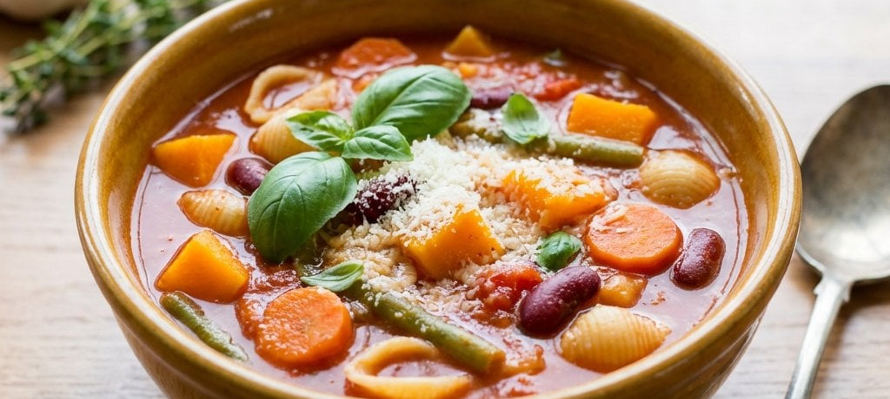 Sezamo vă recomandă această supă Minestrone pentru un prânz sănătos și plin de vitamine. Este o rețetă versatilă, în care puteți folosi orice legume de sezon aveți la îndemână.