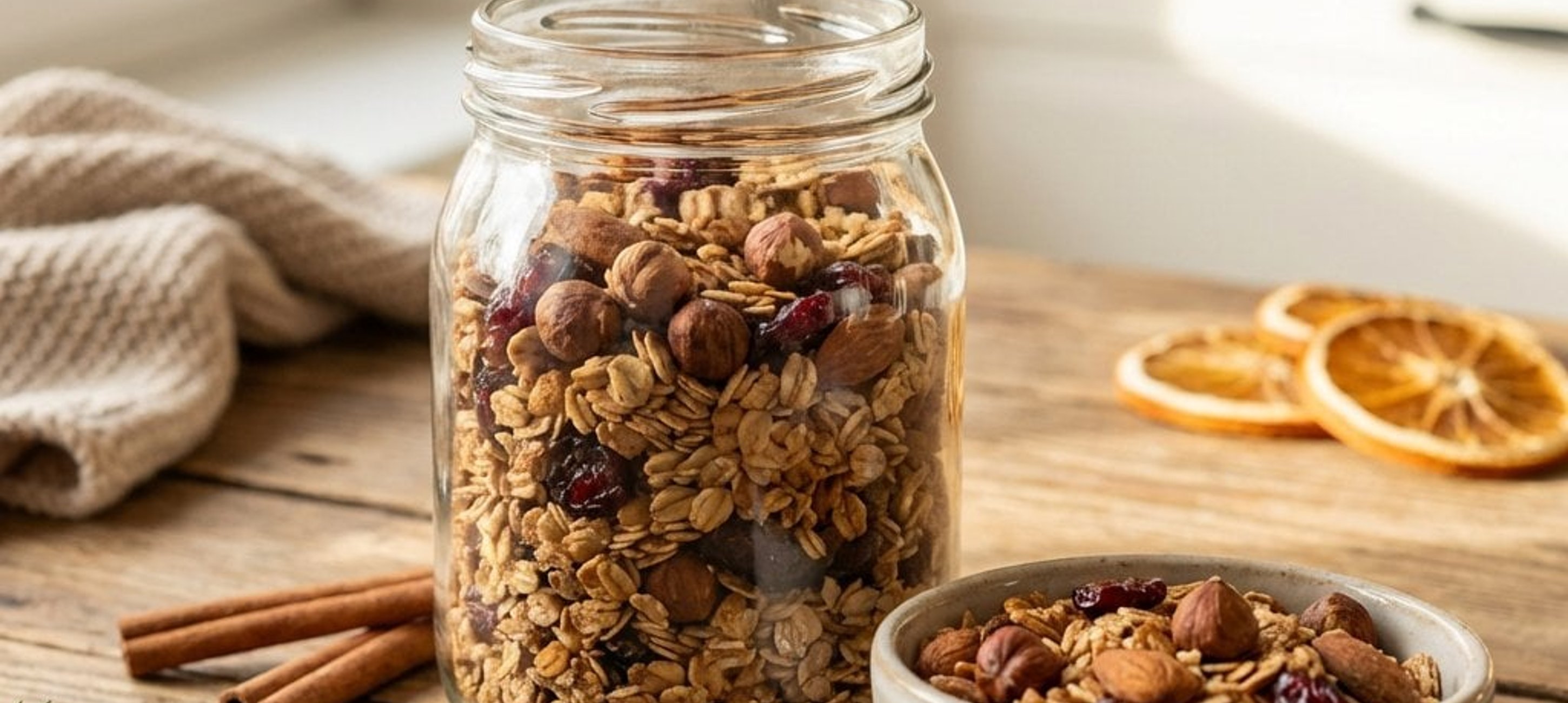 - 4Scoate tava din cuptor și lasă granola să se răcească complet înainte de a o depozita într-un recipient etanș. Granola va deveni crocantă pe măsură ce se răcește.