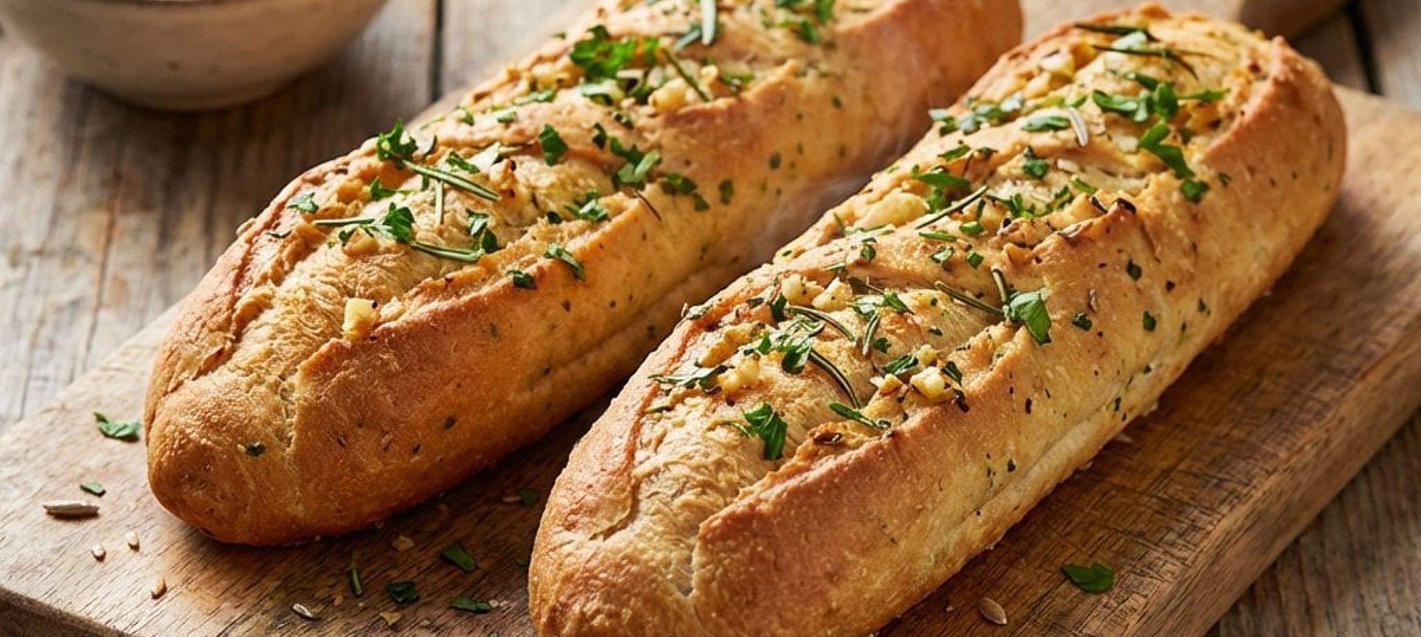 - 3Zdrobește usturoiul și amestecă-l cu restul de ierburi de Provence. Unge baghetele cu acest amestec aromat. Introdu tava în cuptor și coace timp de aproximativ 40 de minute, până când baghetele devin aurii și ferme la atingere.