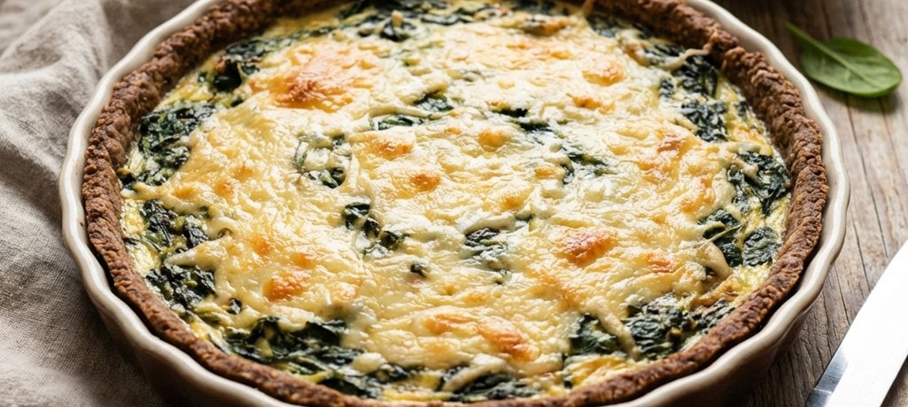 Pentru o crustă și mai crocantă, poți lăsa aluatul la frigider timp de 30 de minute înainte de a-l întinde în formă. Dacă folosești spanac congelat, asigură-te că storci bine tot excesul de apă după decongelare pentru a evita o umplutură apoasă. Servește quiche-ul cald sau la temperatura camerei, alături de o salată verde proaspătă.