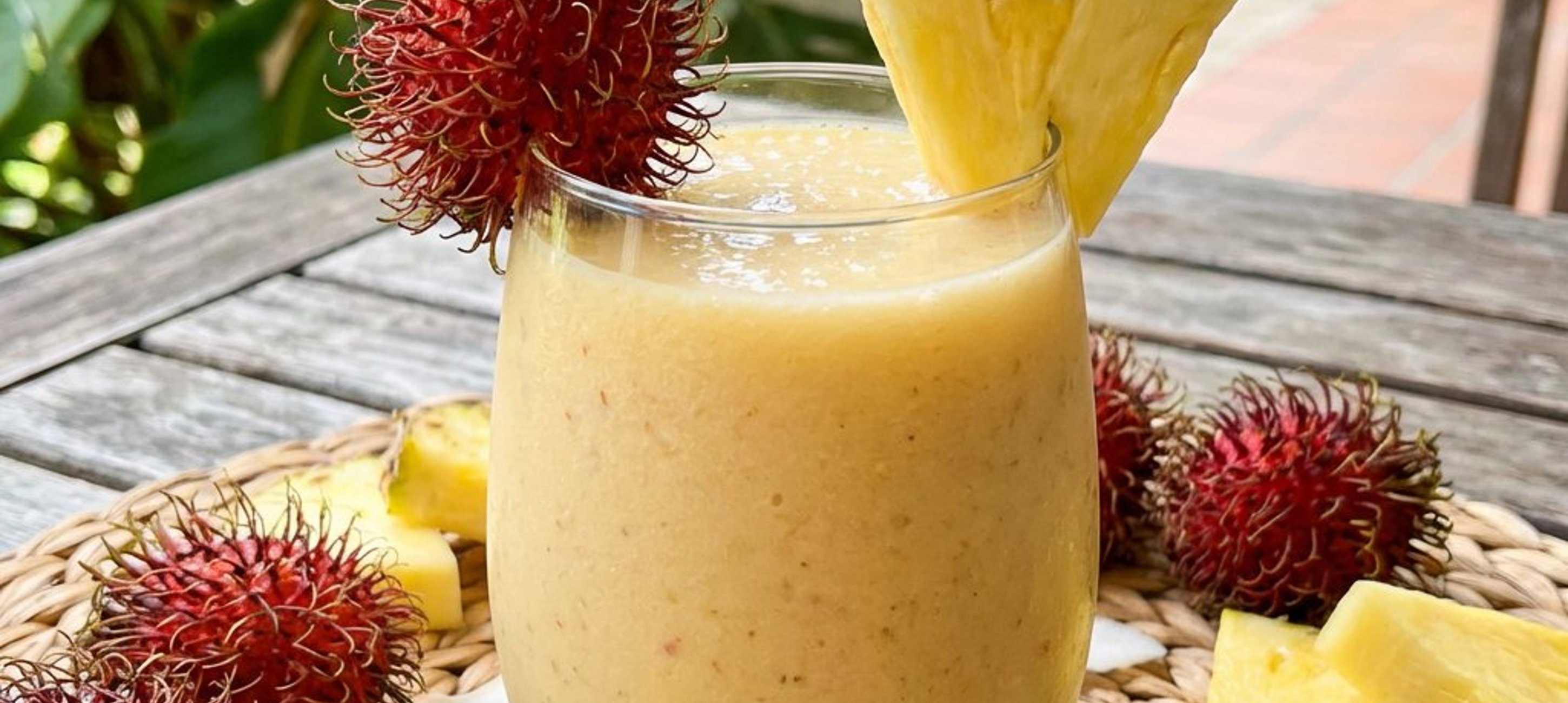 Pentru o textură și mai răcoritoare, poți folosi bucăți de ananas congelate sau poți adăuga câteva cuburi de gheață în blender. Dacă rambutanul proaspăt nu este disponibil, poți folosi litchi ca alternativă.