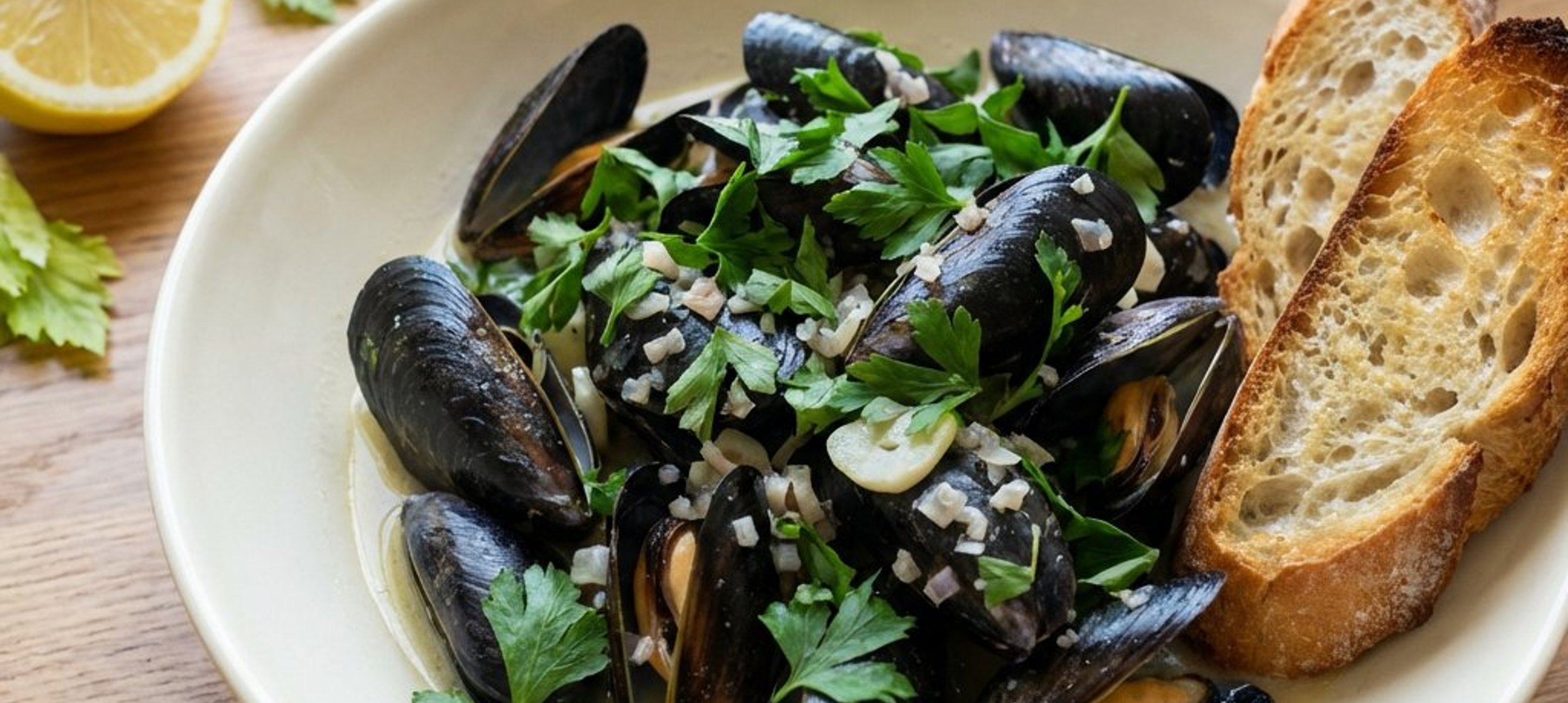 - 4Serviți scoicile fierbinți cu felii de lămâie și baghetă franțuzească proaspătă pentru a absorbi sosul delicios.