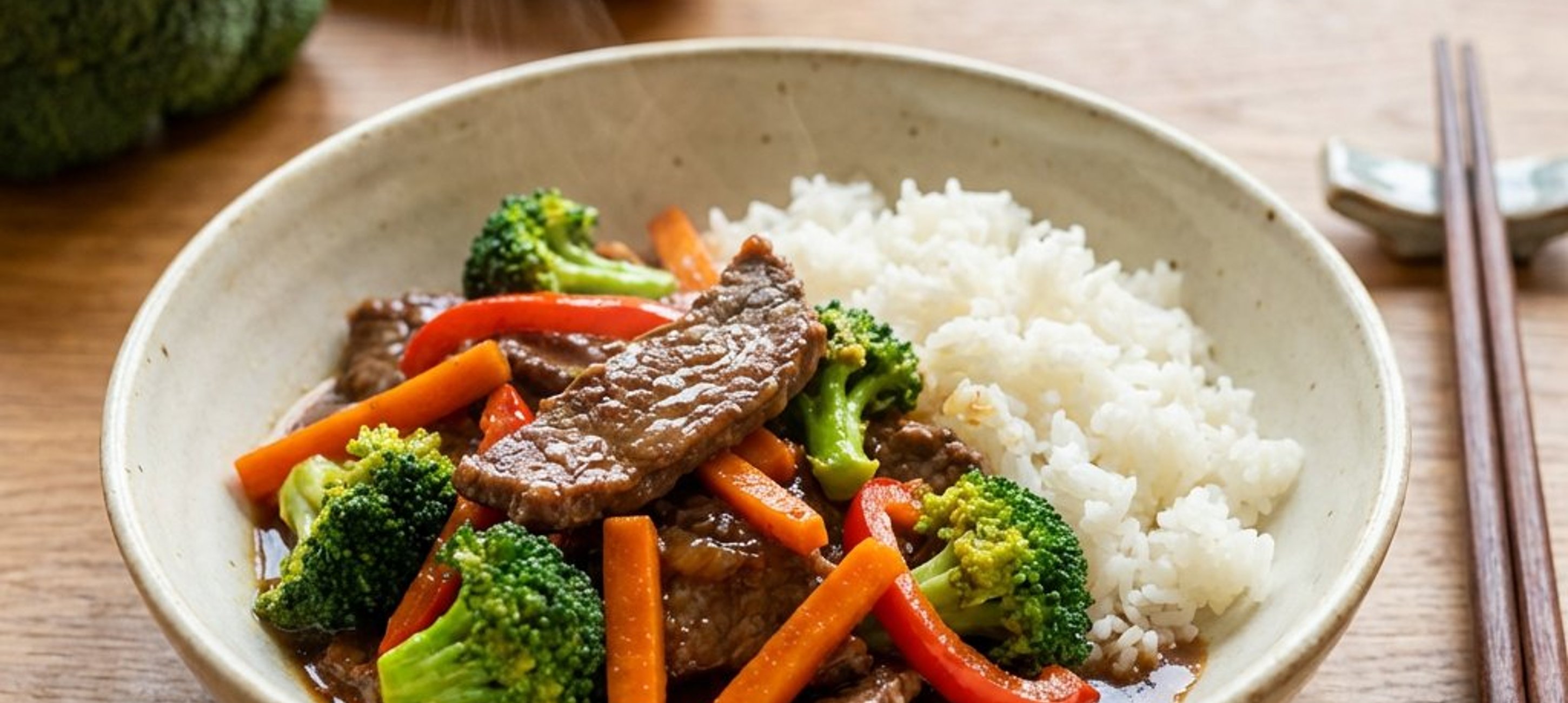 - 3Toarnă sosul stir-fry peste carne și legume. Adaugă un strop de apă dacă sosul este prea dens și mai gătește totul timp de 2 minute pentru a întrepătrunde aromele. Servește imediat alături de orez basmati cald.