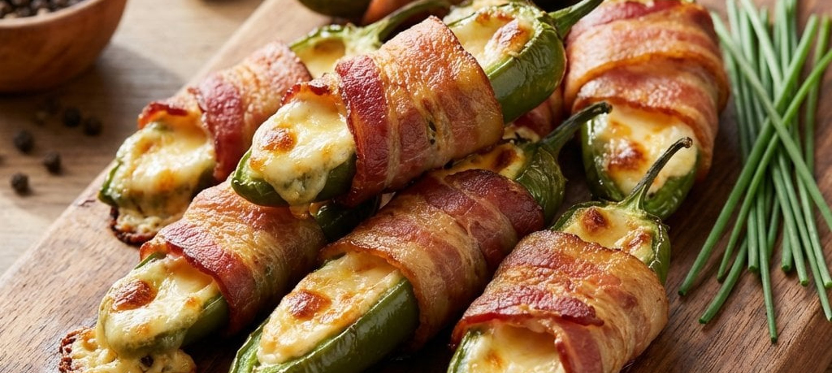 - 3Umpleți fiecare jumătate de ardei cu amestecul de brânză pregătit. Uniți jumătățile la loc (sau lăsați-le desfăcute, după preferință) si înfășurați fiecare ardei strâns într-o felie de bacon.