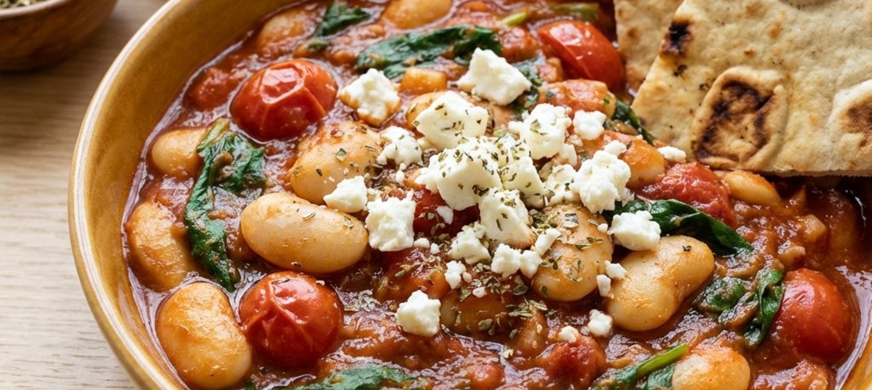 - 2Luați oala de pe foc, adăugați brânza feta sfărâmată și amestecați ușor. Distribuiți mâncarea de fasole în farfurii și serviți-o caldă, alături de pâine pita sau pâine cu maia.