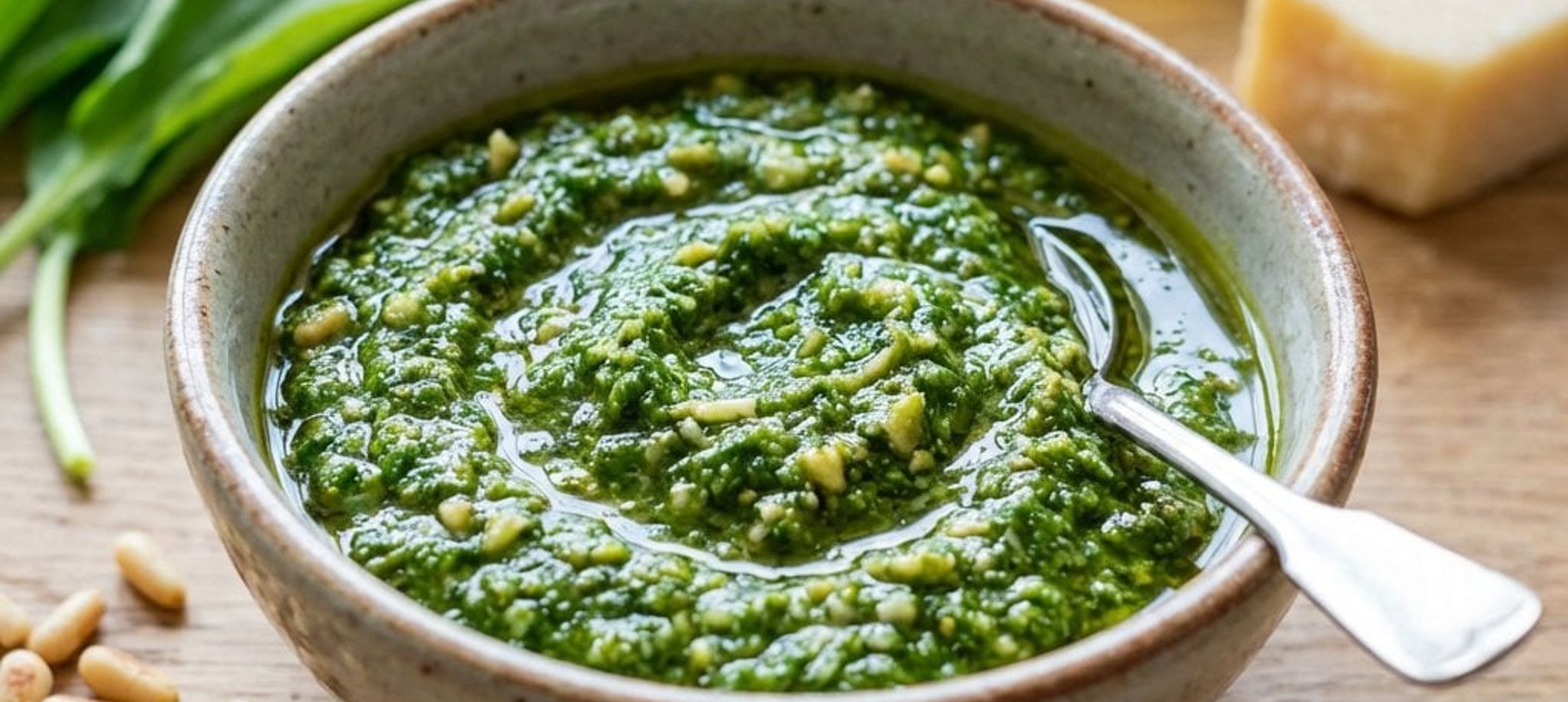 Pesto-ul de leurdă este o explozie de arome primăvăratice. Încearcă-l cu paste proaspete sau întins pe o felie de pâine cu maia prăjită!