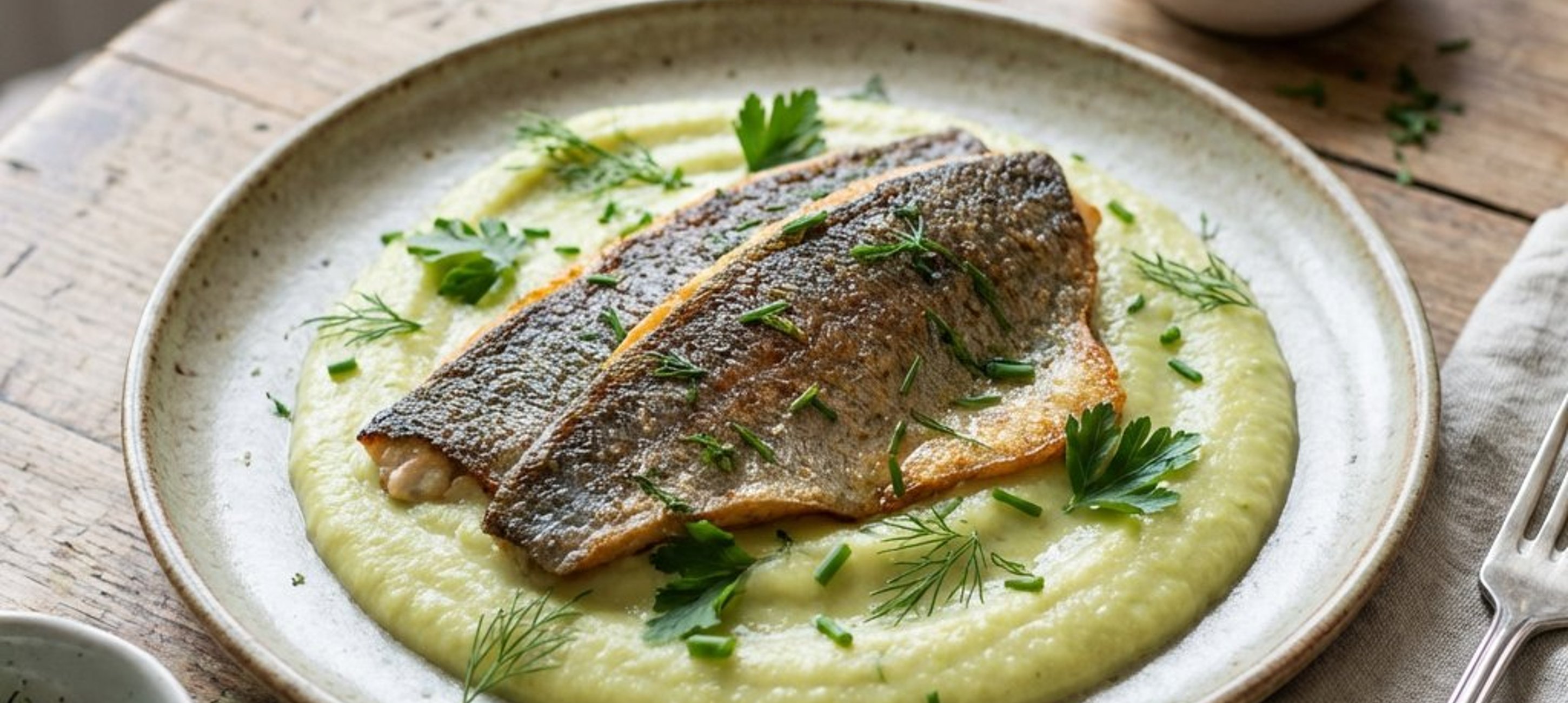 Încearcă să prăjești păstrăvul mai întâi pe partea cu pielea pentru a obține acea textură crocantă delicioasă care contrastează perfect cu piureul fin de praz.