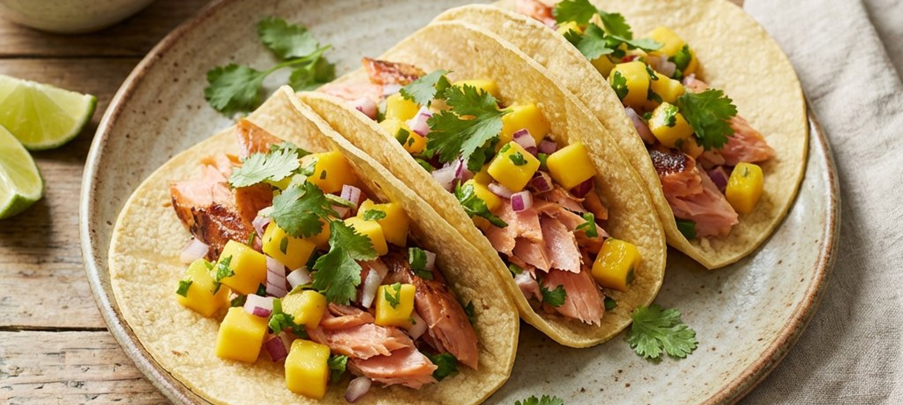 Pentru o experiență autentică, încălziți tortillele chiar înainte de servire pentru a le păstra flexibile și aromate. Păstrăvul somonat afumat oferă o notă rafinată care echilibrează perfect dulceața fructelor tropicale.