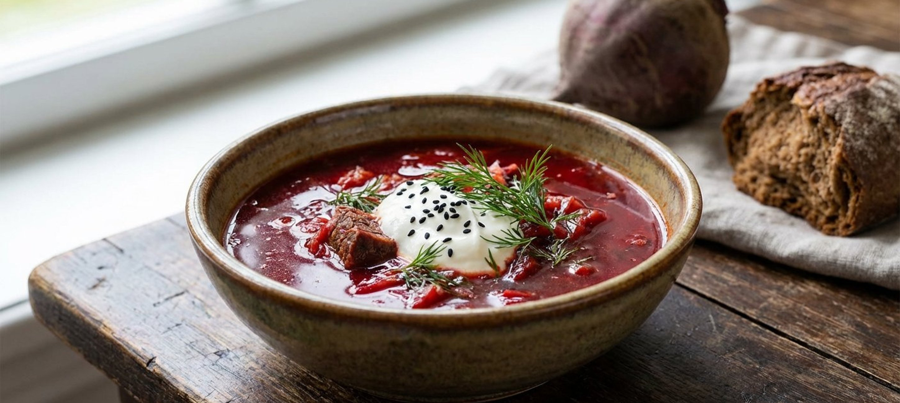 - 3Serviți borșul fierbinte, cu o lingură generoasă de smântână fermentată și mărar proaspăt tocat deasupra.