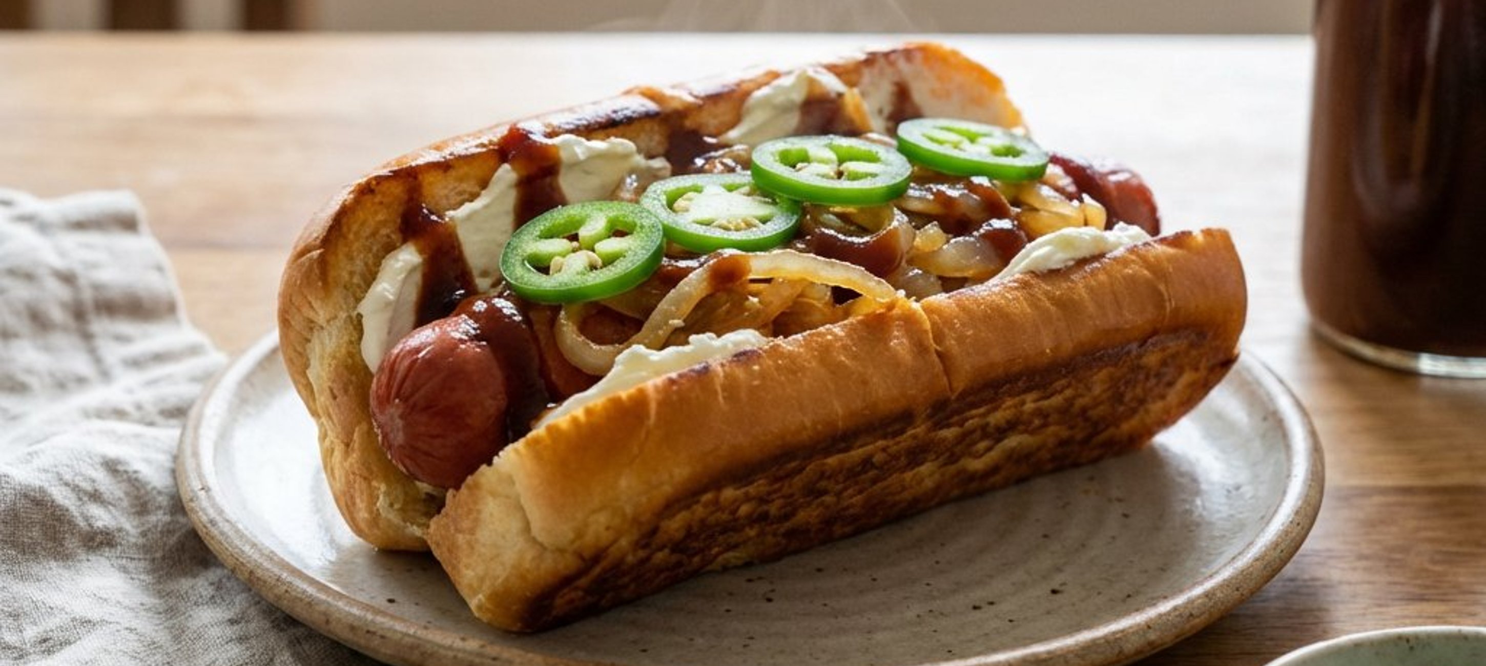 - 3Finalizați hot dog-ul adăugând feliile de jalapeño și turnând deasupra sosul BBQ. Dacă doriți, puteți adăuga și puțină varză murată pentru un plus de textură și aciditate. Serviți imediat!
