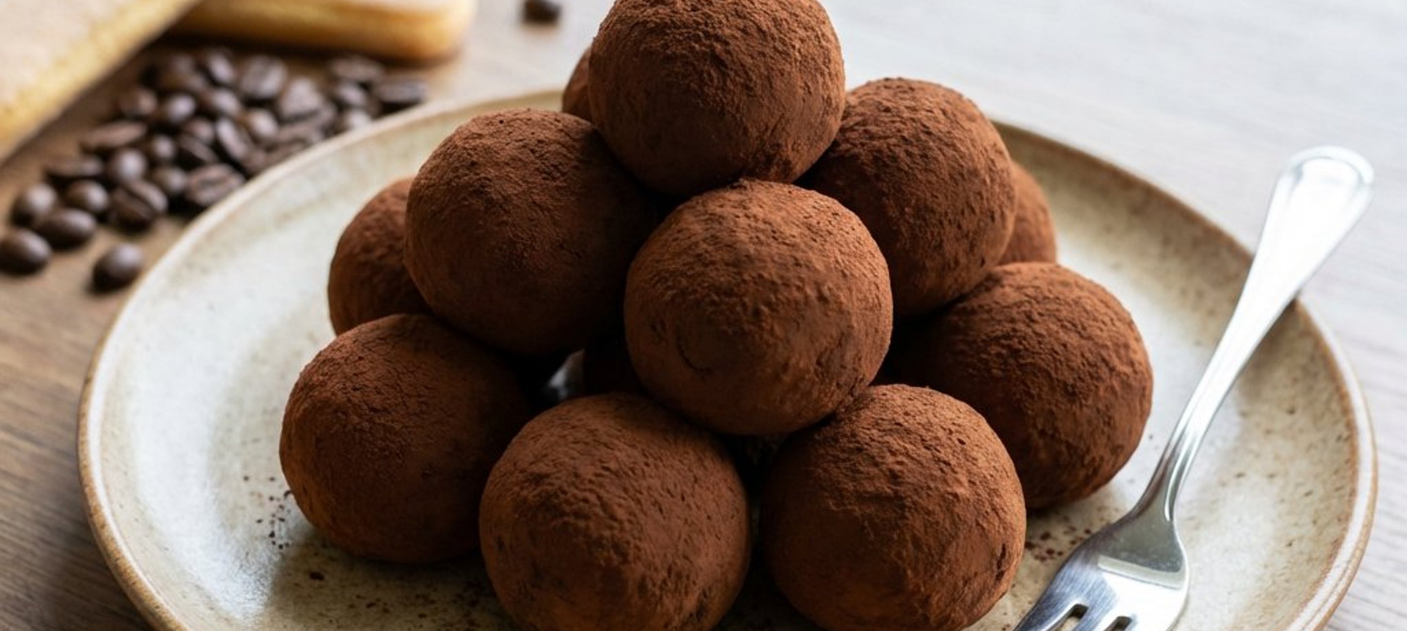 - 4Din aluatul pregătit, formați 10 bomboane de dimensiuni egale. Treceți fiecare biluță prin cacao pudră până când este acoperită uniform.