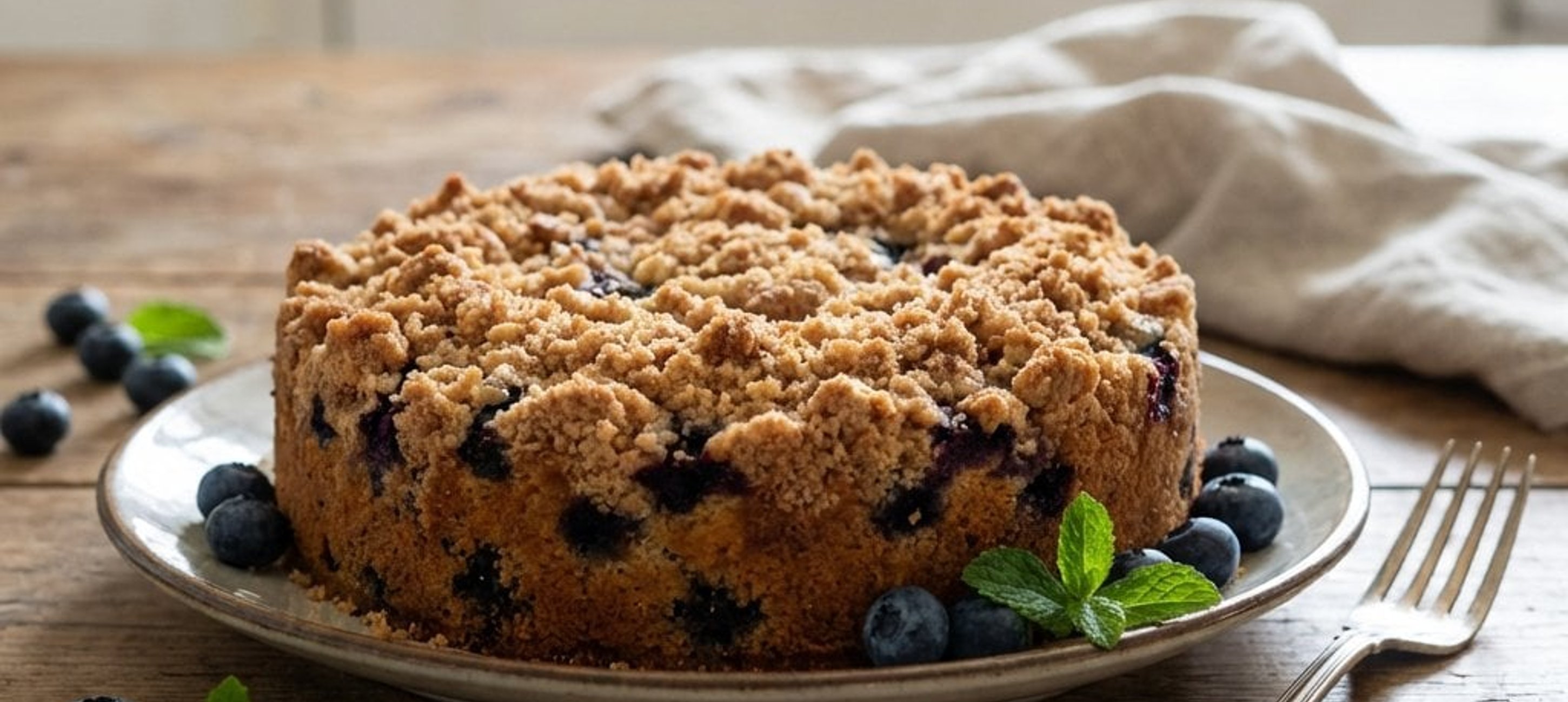 - 4Distribuiți uniform afinele peste aluat și presărați deasupra amestecul fărâmicios pregătit anterior.