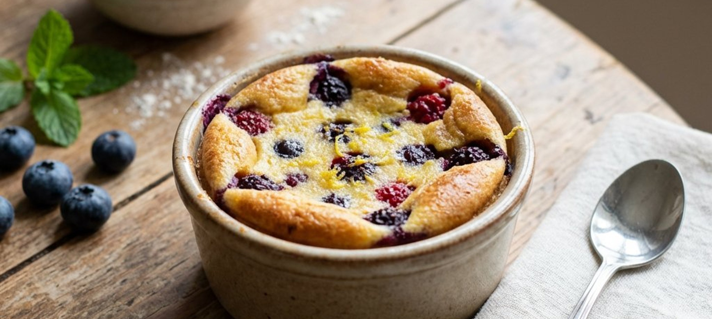 - 2Scoate aluatul din frigider. Repartizează uniform fructele de pădure în formele pregătite, apoi toarnă aluatul peste ele. Introdu formele în cuptorul preîncălzit și coace timp de 30-35 de minute la 170-180 °C, până când desertul devine auriu și ușor umflat.