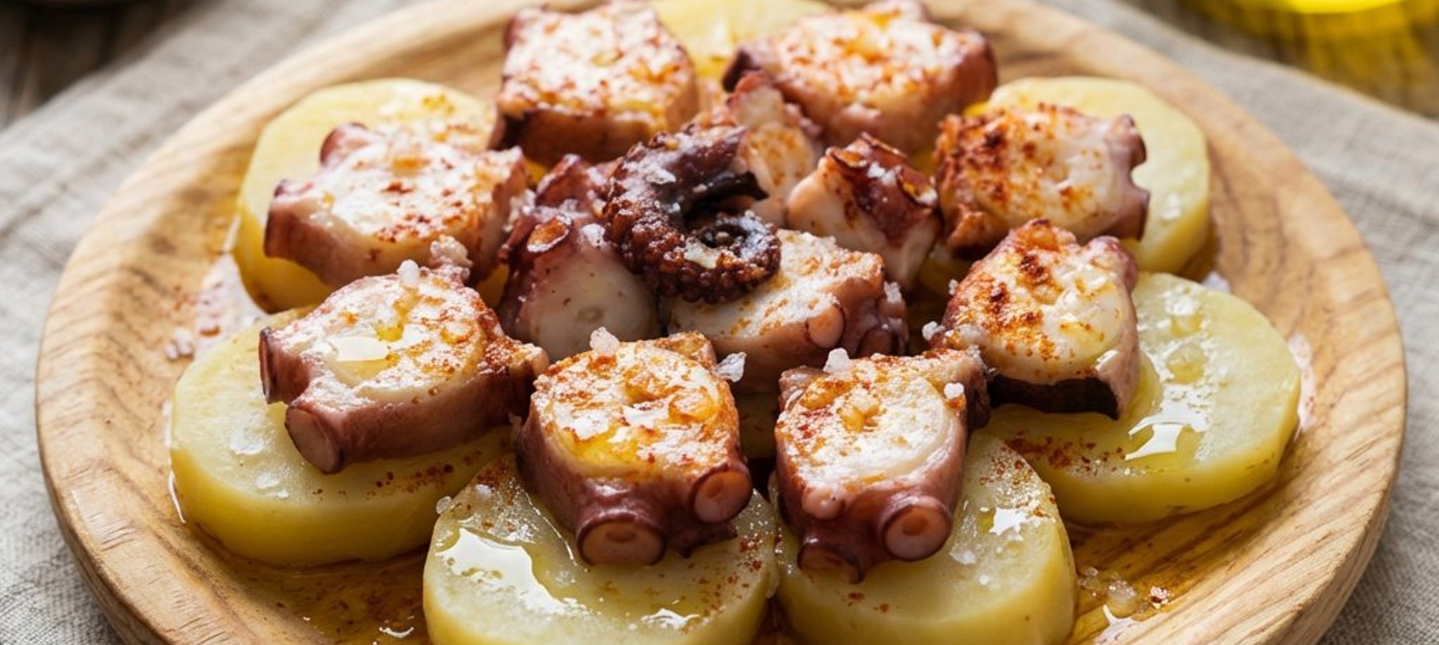 Pentru un gust autentic, servește caracatița pe un platou tradițional din lemn, care ajută la absorbția excesului de apă și păstrează uleiul de măsline și aromele condimentelor. Poți folosi și boia afumată pentru o aromă și mai profundă.