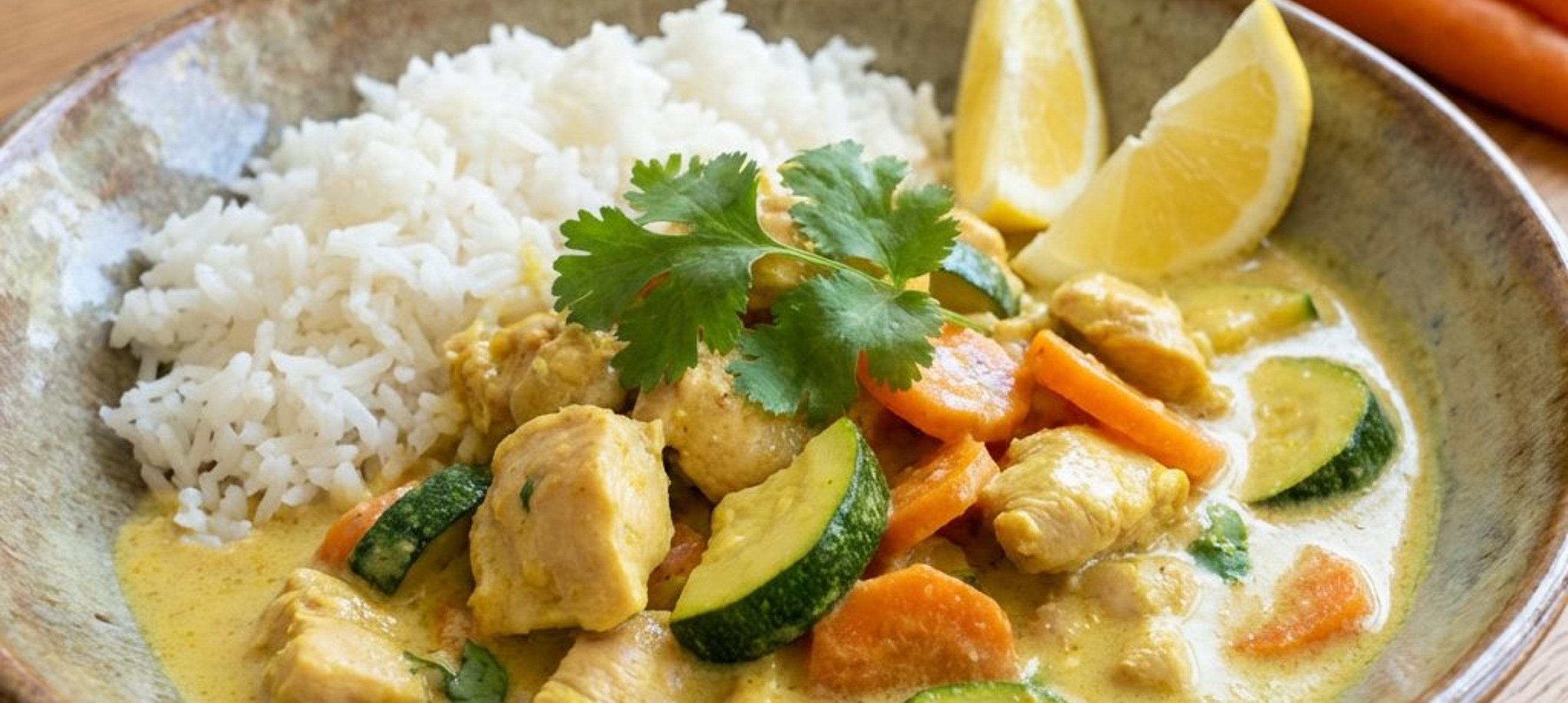 - 1Între timp, fierbeți orezul basmati conform instrucțiunilor de pe ambalaj. Serviți curry-ul cald alături de orezul pufos.