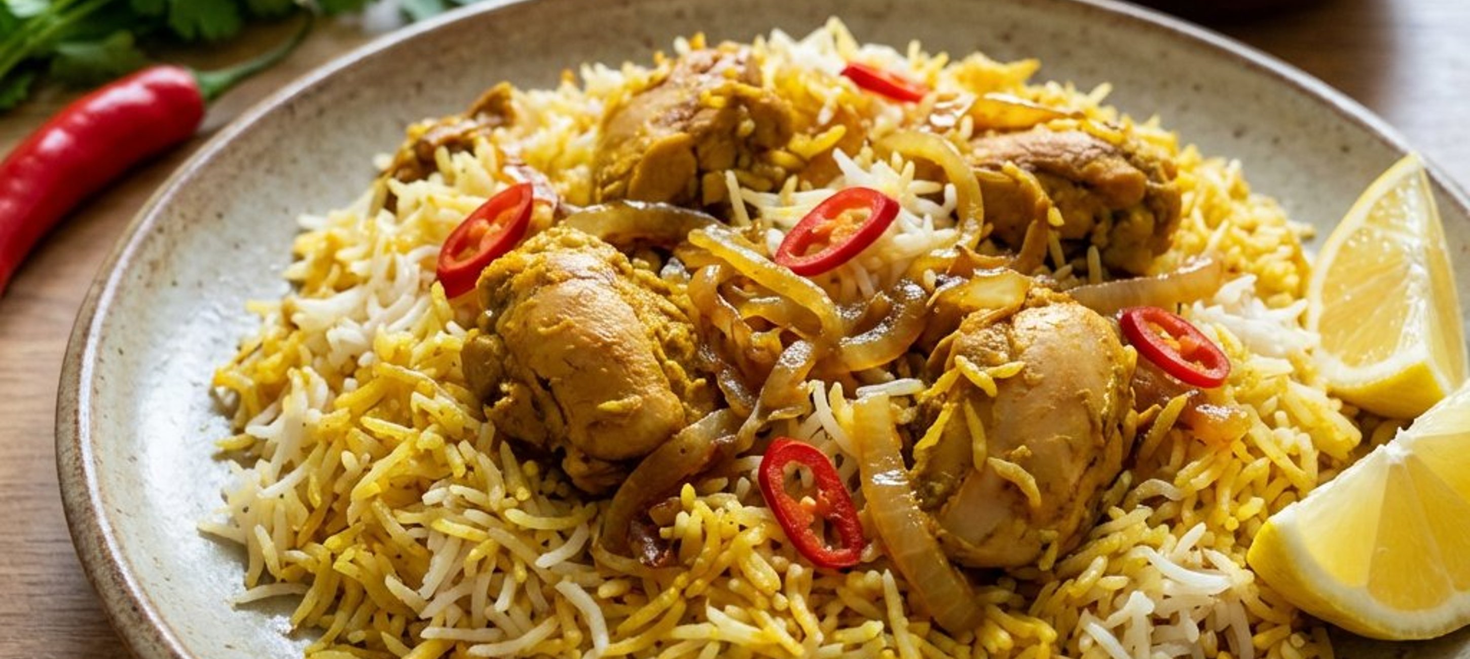 - 2Peste ceapă, adaugă ardeiul iute tocat și mai călește puțin. Toarnă laptele de cocos și lasă-l să se încălzească. Când laptele de cocos începe să fiarbă, adaugă orezul prefiert și amestecă ușor. Deasupra orezului, așază bucățelele de pui marinat. Acoperă cu un capac și lasă biryani-ul să fiarbă la foc mic timp de aproximativ 5-10 minute, până când toate aromele se întrepătrund, iar orezul și puiul sunt complet gătite. Restul de iaurt (350 g) se poate servi separat sau adăugat la final pentru cremozitate.