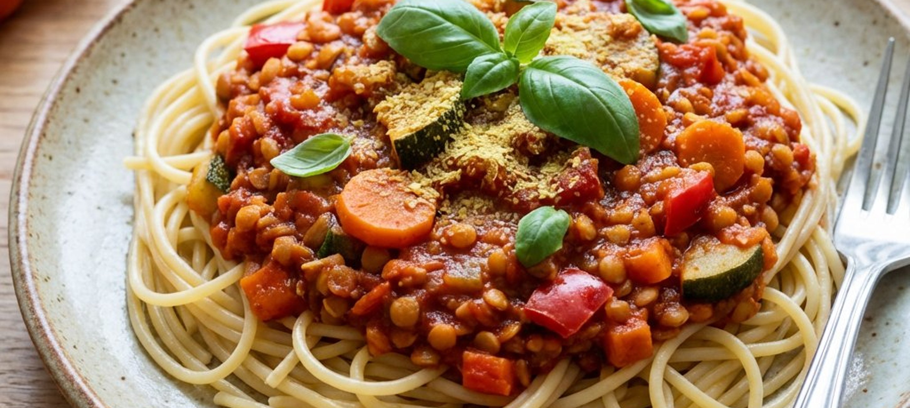 - 3Între timp, fierbeți spaghetele în apă cu sare conform instrucțiunilor de pe ambalaj. Când sunt gata, scurgeți-le și amestecați-le direct cu sosul de linte. Dacă doriți să pregătiți porțiile în avans, păstrați pastele și sosul separat până în momentul servirii.