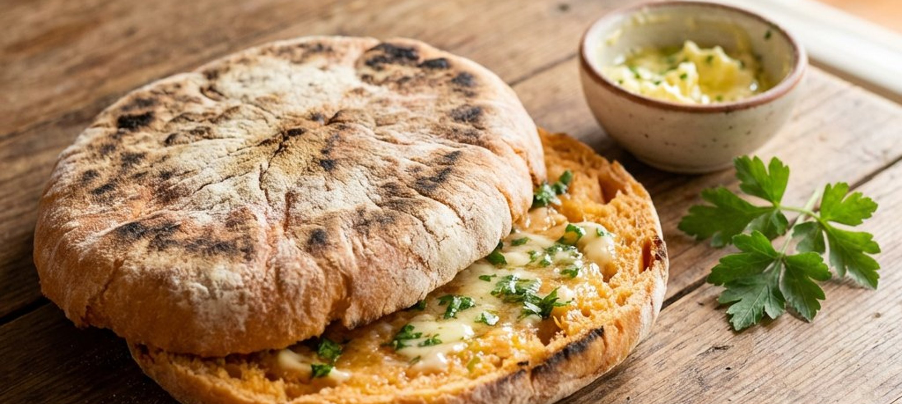 - 5Pentru untul aromat: toacă mărunt pătrunjelul și amestecă-l într-un bol cu untul moale, usturoiul zdrobit și un praf de sare.