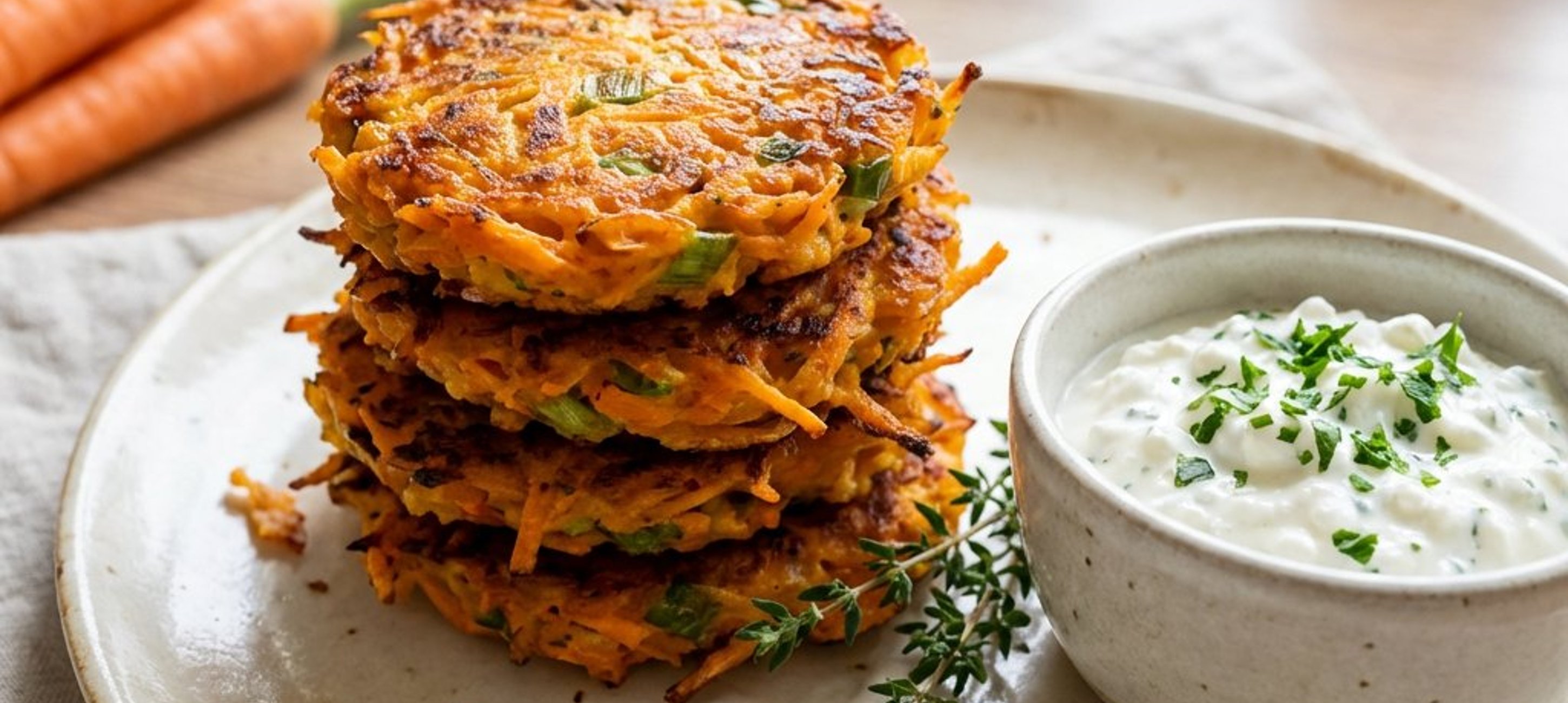 - 1Curăță morcovii și dă-i pe răzătoarea mică. Pune-i într-un bol și adaugă ceapa verde tăiată mărunt, un cățel de usturoi zdrobit, frunzele de cimbru, ouăle și făina. Condimentează cu sare și piper, apoi amestecă totul până obții un aluat omogen și ușor lipicios.