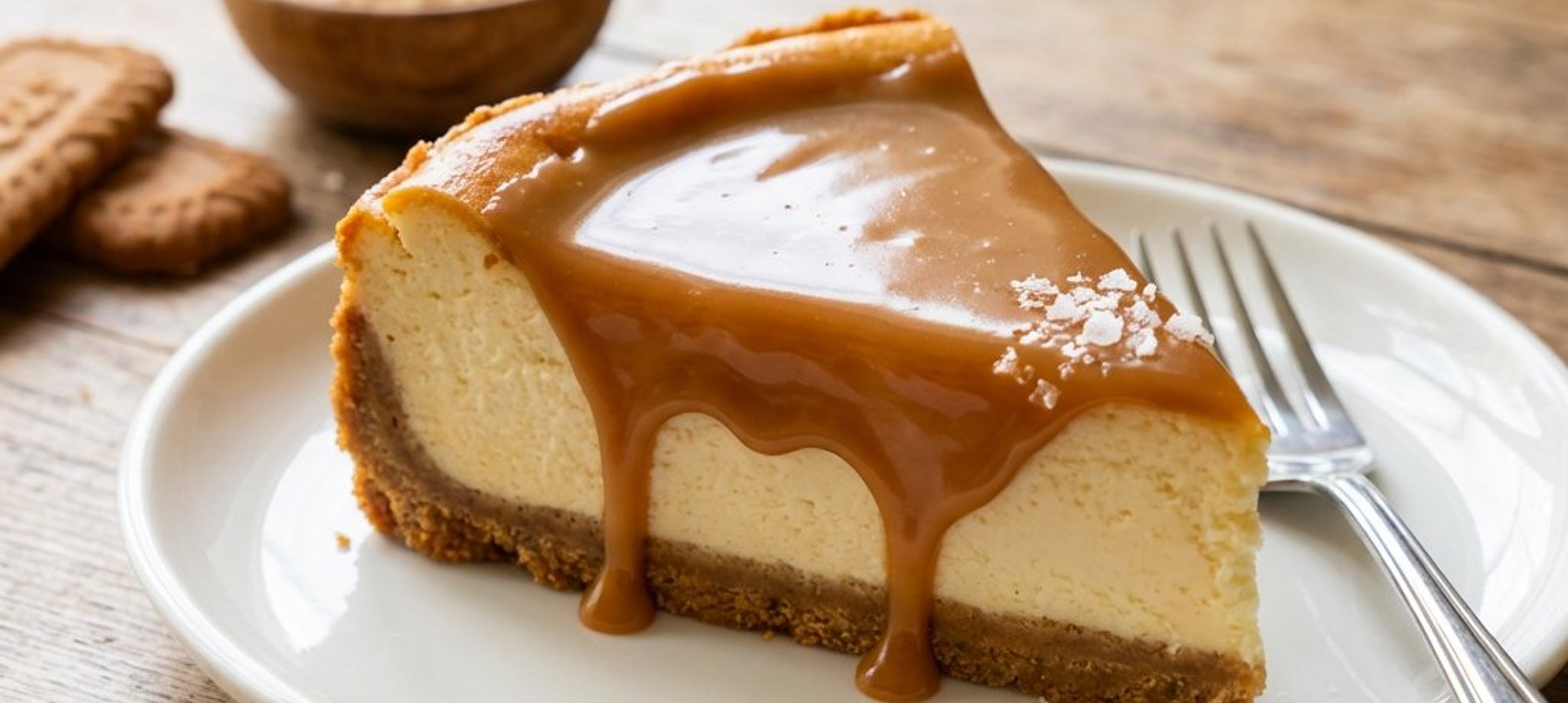 - 2Toarnă glazura de caramel răcită peste cheesecake-ul răcit și servește. Poftă bună!