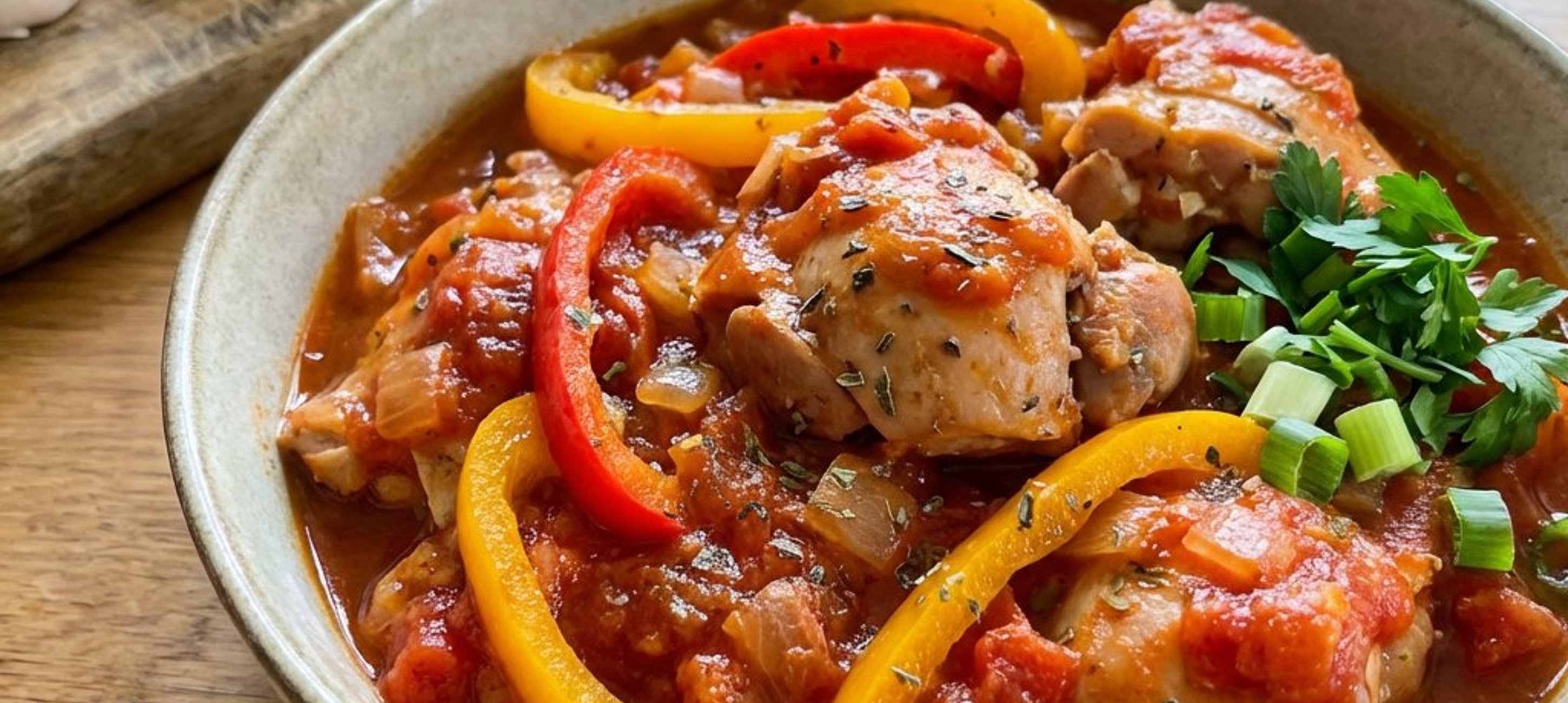 - 2Curăță ceapa și tai-o mărunt. Spală ardeii, curăță-i de semințe și taie-i în fâșii subțiri. Taie carnea de pui în bucățele potrivite, sărează-le și presară deasupra amestecul de condimente pregătit anterior, asigurândute că bucățile sunt bine acoperite.