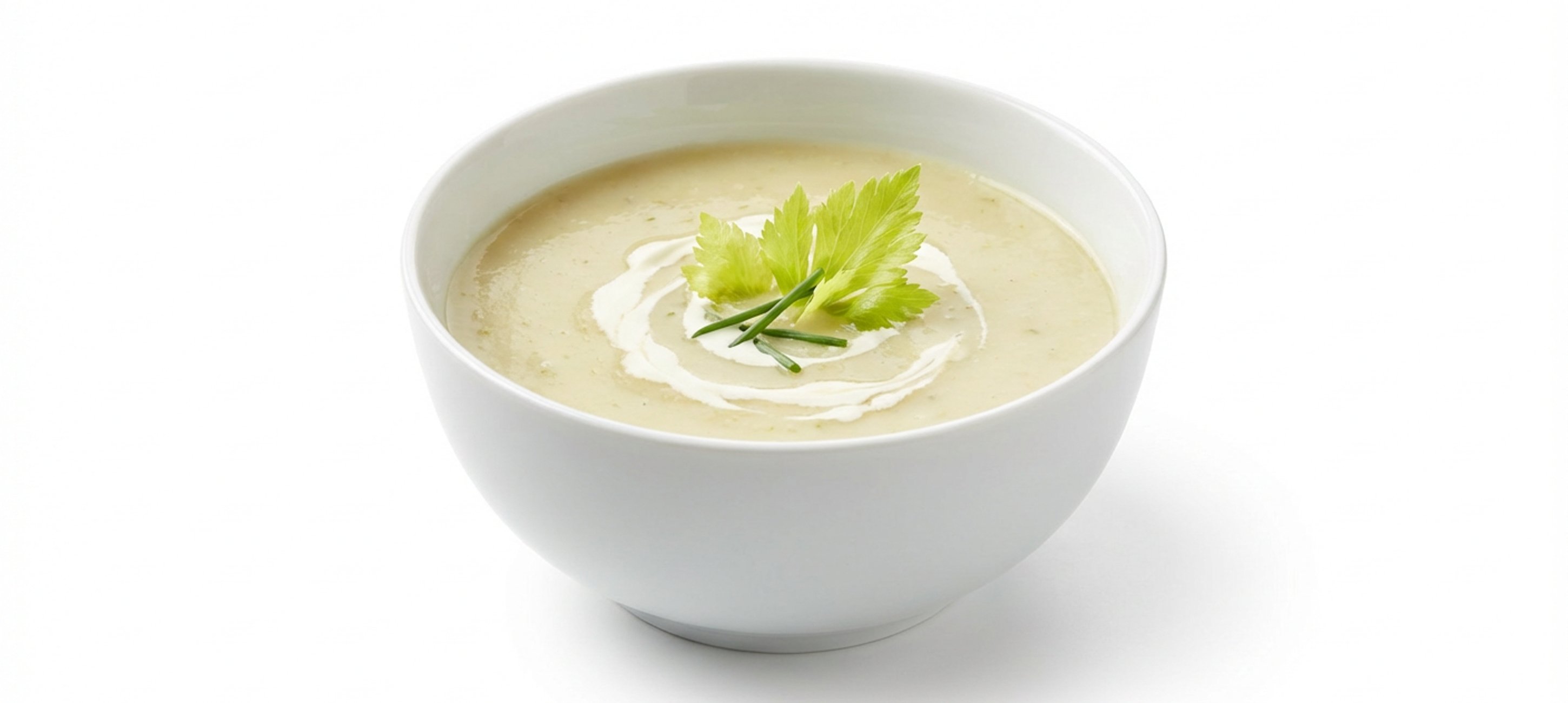 - 1Taie țelina în cubulețe de aproximativ 2 cm. Toacă ceapa mărunt, iar cartofii taie-i în cubulețe de 1 cm.