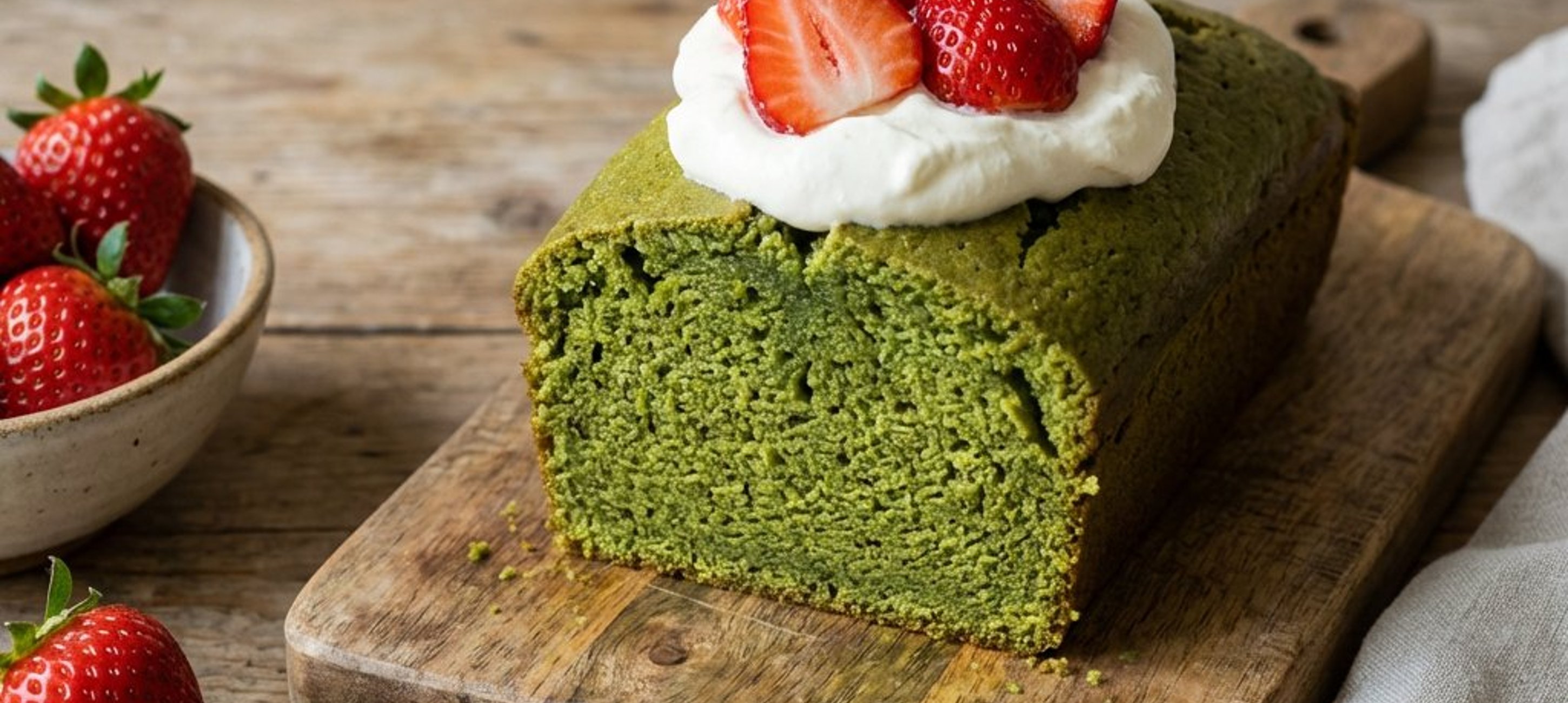 - 4După ce checul s-a răcit complet, pregătiți crema. Amestecați mascarpone cu zahărul pudră, pudra de matcha și restul de 0.3 linguriță de vanilie până obțineți o cremă fină și densă. Întindeți crema peste checul răcit și decorați cu felii de căpșune proaspete. Poftă bună!