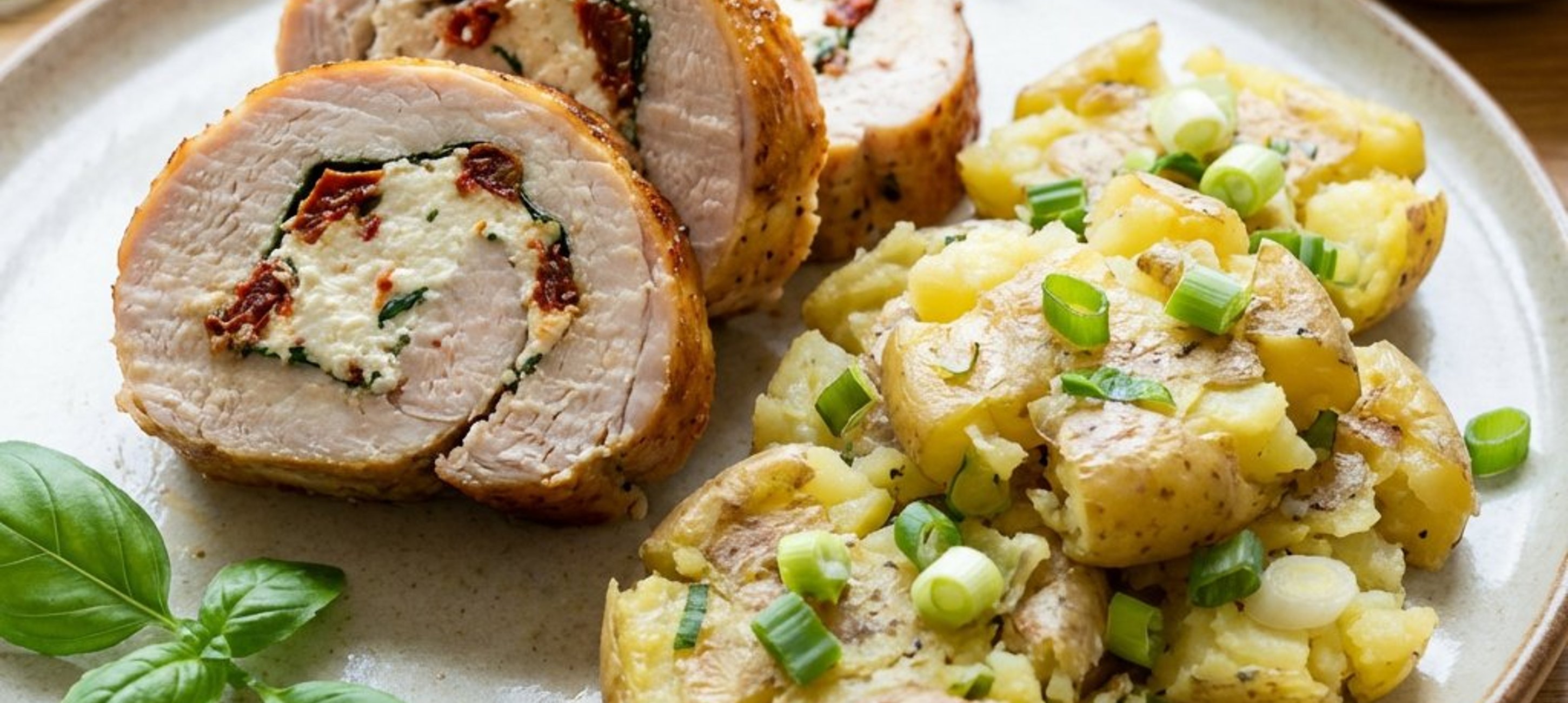 - 4Tăiați rulada de curcan în felii și serviți-o alături de cartofii zdrobiți calzi.