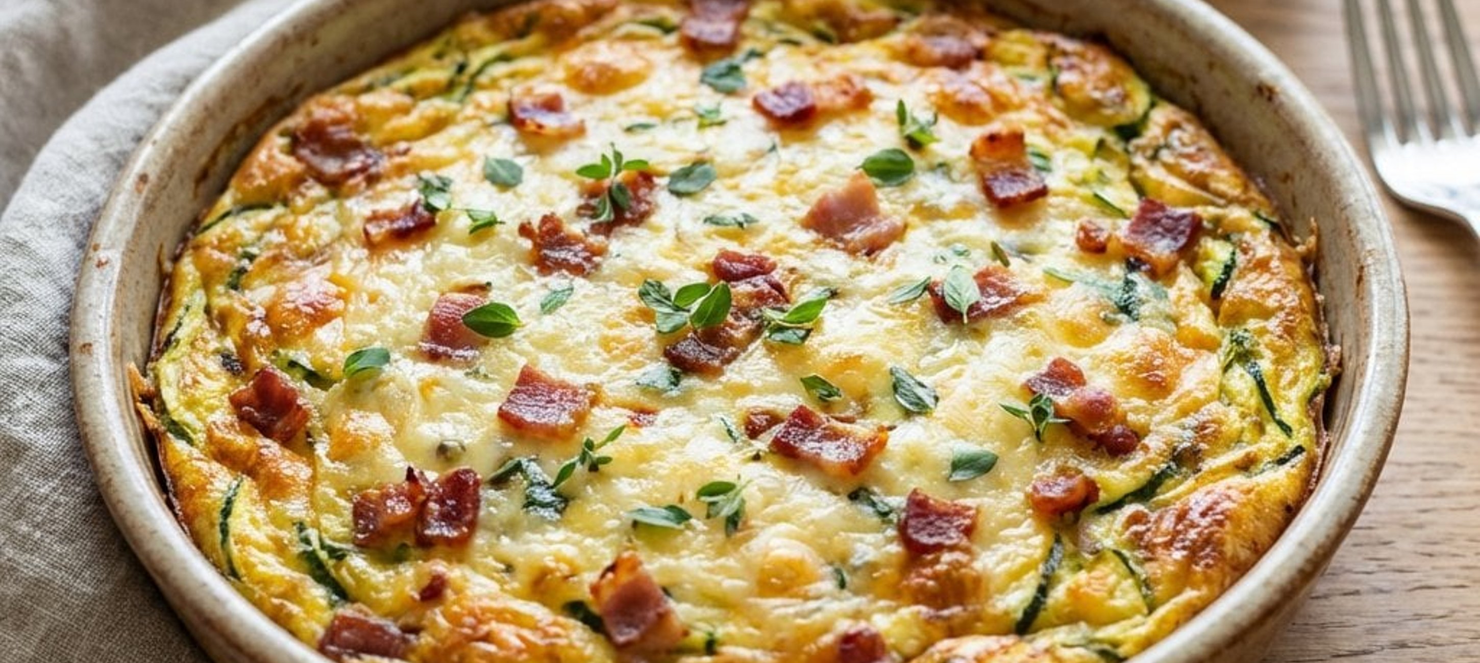 - 1Turnați compoziția în vasul pregătit și coaceți în cuptor timp de 30-35 minute la 190-195 °C, până când frittata este aurie și fermă.