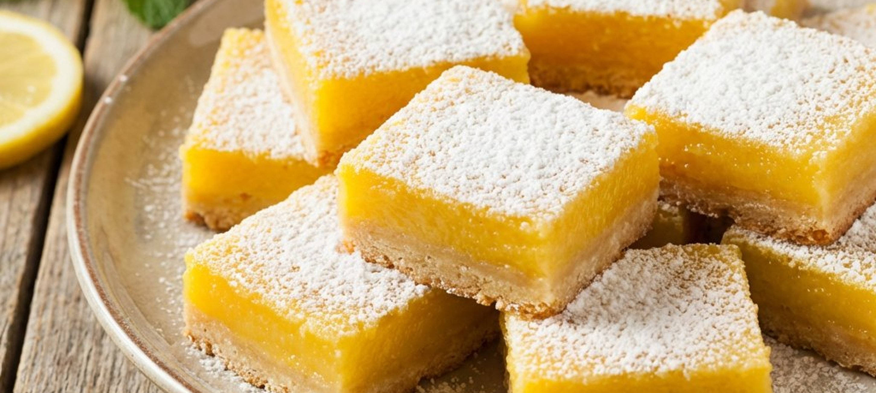 - 1După ce s-a răcit parțial, scoateți prăjitura din tavă și puneți-o la frigider pentru aproximativ 1-2 ore, astfel încât umplutura de lămâie să se întărească bine.