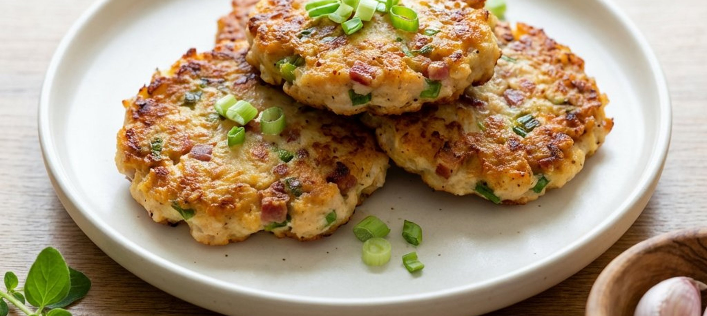- 1Puneți în blender carnea de pui friptă (fără oase), ketchup-ul, muștarul, cele 2 ouă, sosul worcestershire, măghiranul, pudra de curry, 3 linguri de apă, usturoiul presat, sare și piper după gust. Mixați totul până obțineți o consistență în care se mai pot distinge bucățele mici din ingrediente. Transferați amestecul într-un bol mare, adăugați ceapa verde, baconul și brânza rasă, apoi omogenizați.