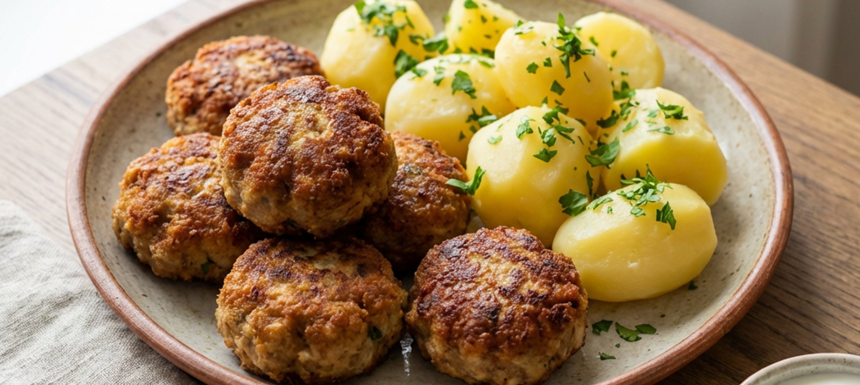 - 5Servește chiftelele calde alături de cartofi fierți cu puțin unt și, opțional, o salată de sezon sau murături. Sfat: Pentru chiftele și mai suculente, poți adăuga în compoziție 100 g de gheață zdrobită fin.