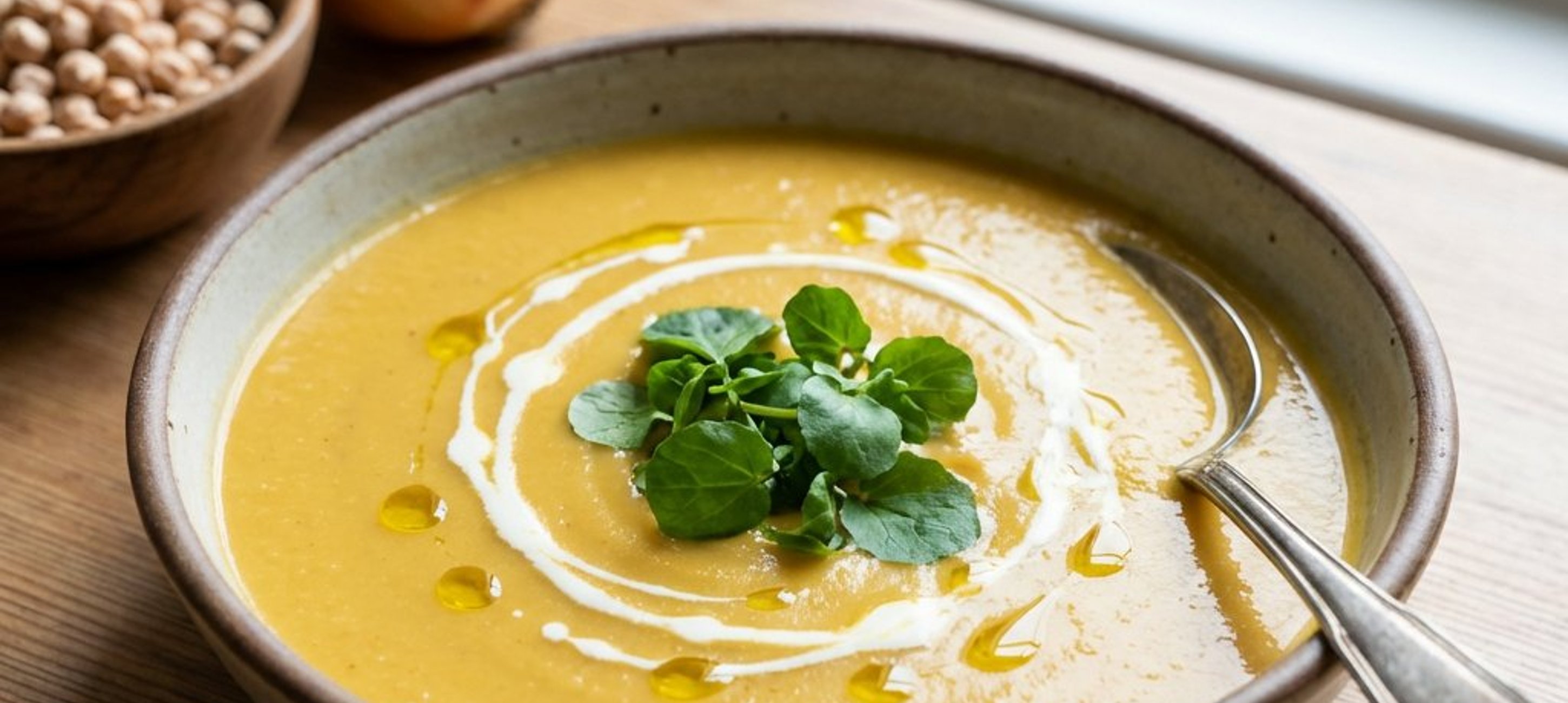 Puteți decora supa cu câteva picături de ulei de măsline și puțină creson proaspăt pentru un aspect profesional.