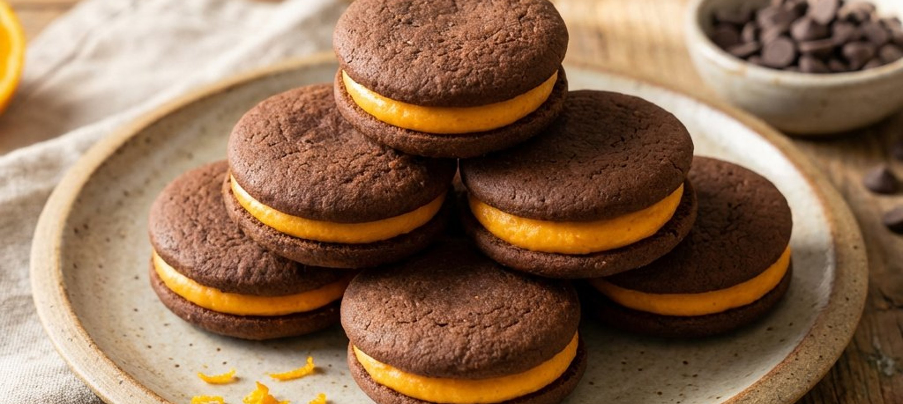 - 6Bateți smântâna pentru frișcă până devine fermă, apoi încorporați-o delicat în crema de portocale răcită. Lipiți fursecurile două câte două cu un strat generos de cremă.