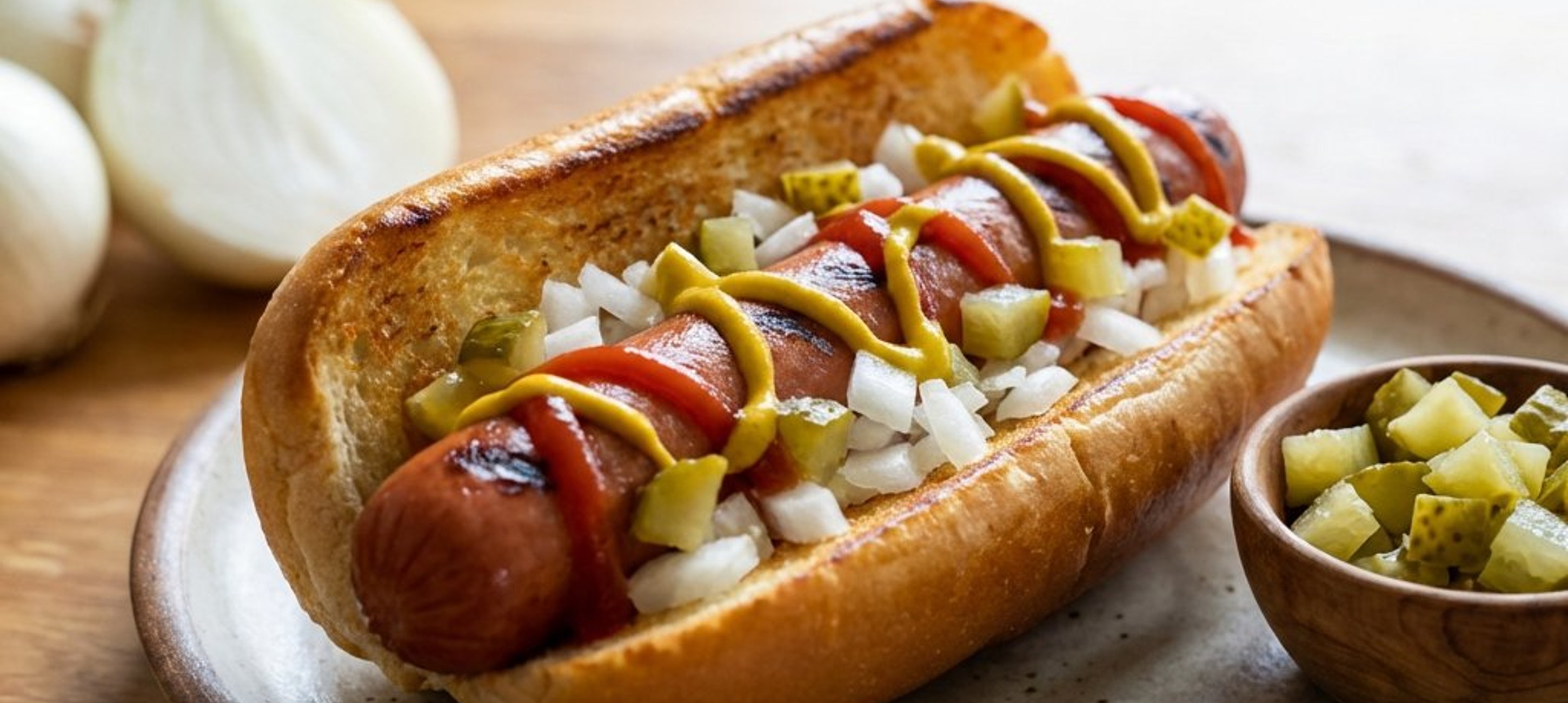 Pentru un plus de aromă, poți rumeni ceapa în puțin unt înainte de a o adăuga în hot dog. De asemenea, poți folosi chifle tip brioche pentru o textură mai fină și un gust ușor dulceag care completează perfect crenvurștii sărați.