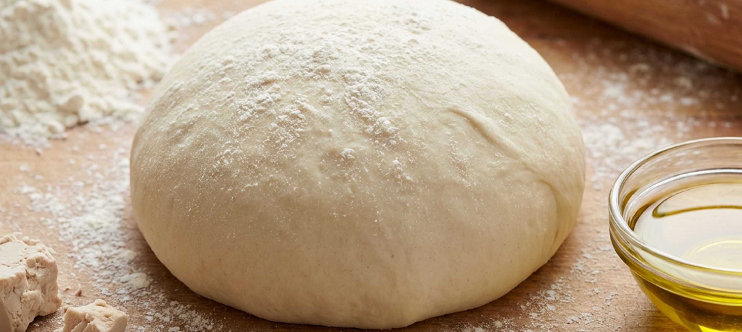 - 3Frământă aluatul la viteză medie timp de aproximativ 10 minute. Transferă-l apoi pe o suprafață de lucru presărată cu făină, formează o bilă netedă și unge-o cu o linguriță de ulei de măsline pentru a preveni uscarea. Lasă aluatul să se odihnească timp de 10 minute.
