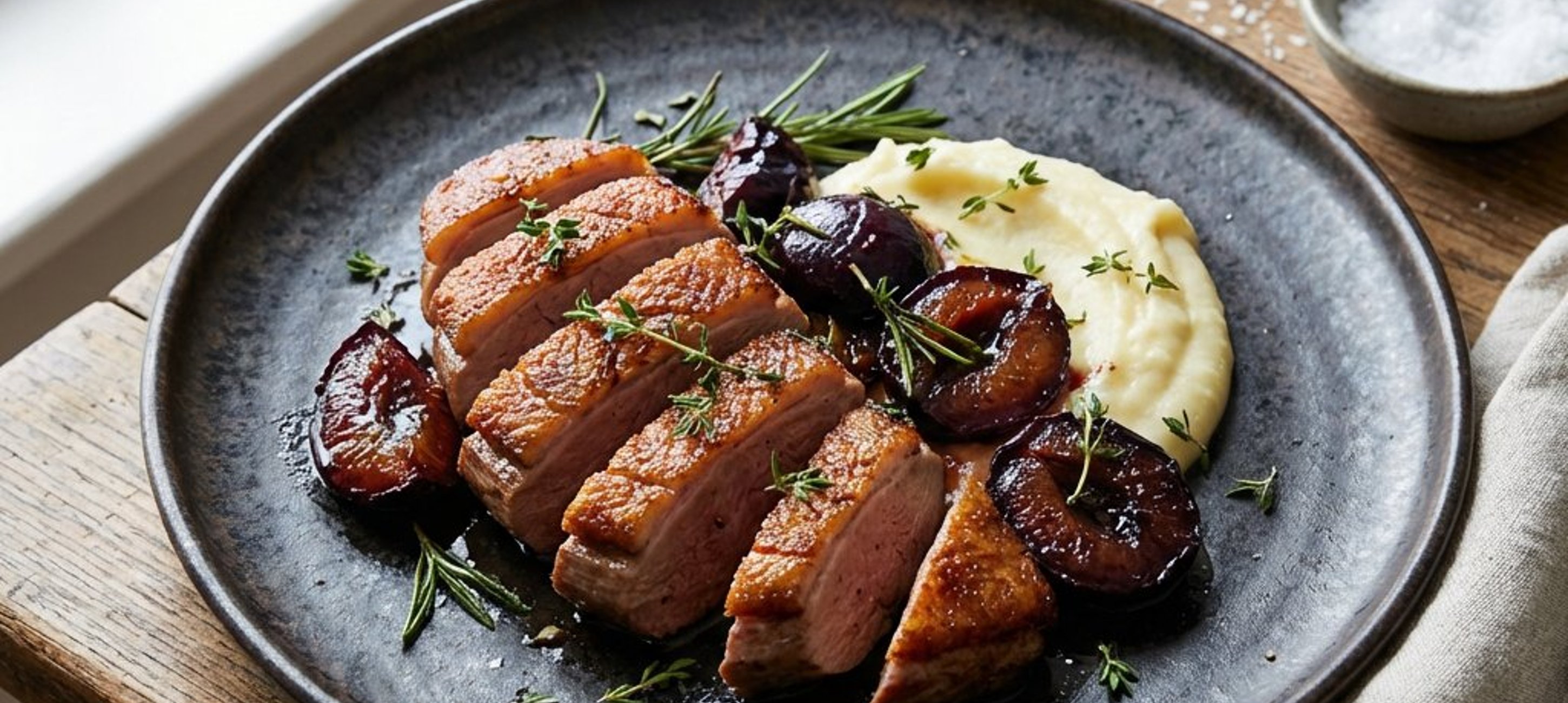 - 4Scoateți pieptul de rață din tigaie și lăsați-l să se odihnească cel puțin 10 minute înainte de feliere.