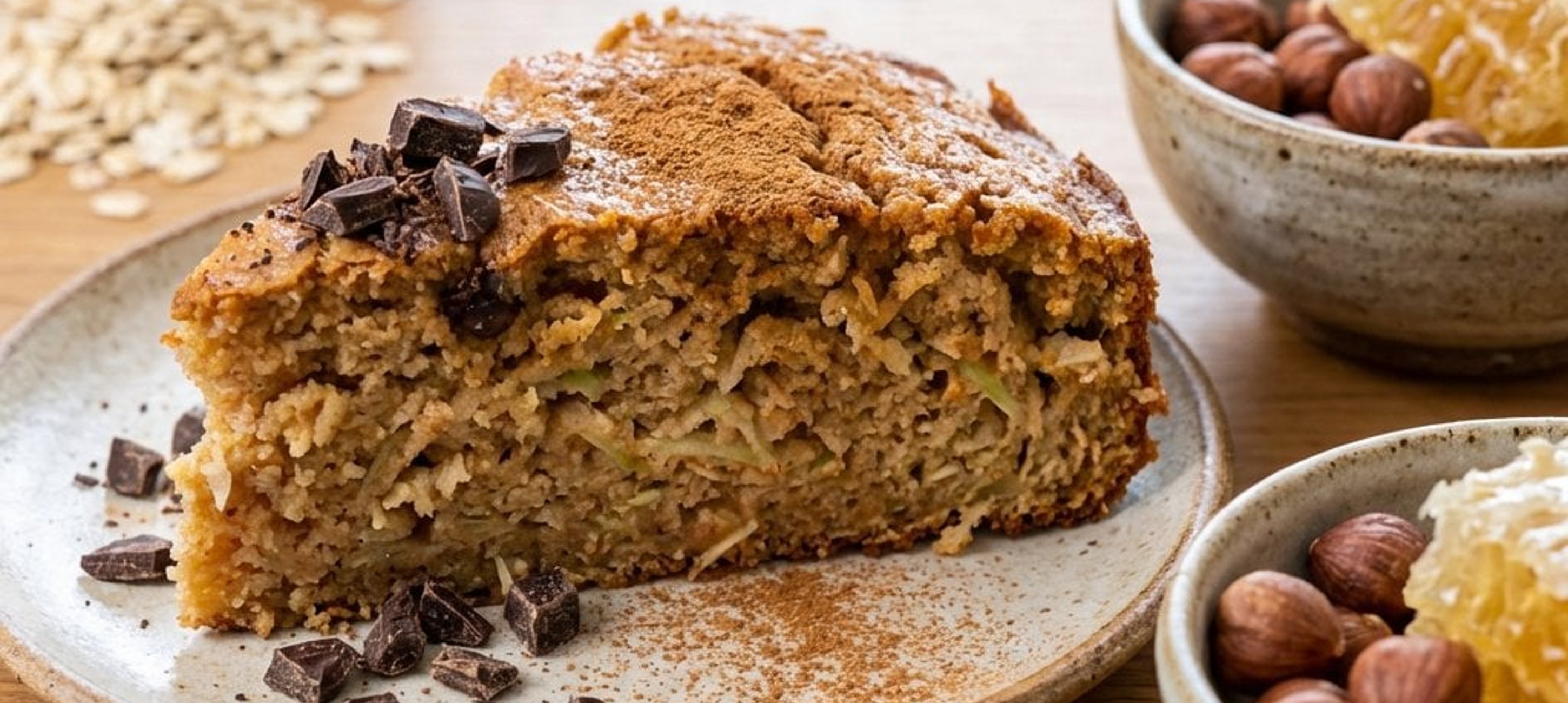 - 2Într-un bol încăpător, amestecați fulgii de ovăz, iaurtul natural, mierea, ouăle, praful de copt, scorțișoara și uleiul de cocos (topit, dacă este solid). Folosiți un tel pentru a omogeniza compoziția până obțineți un aluat neted. Dacă doriți, acum puteți adăuga ciocolata neagră tăiată grosier sau alunele de pădure tocate.