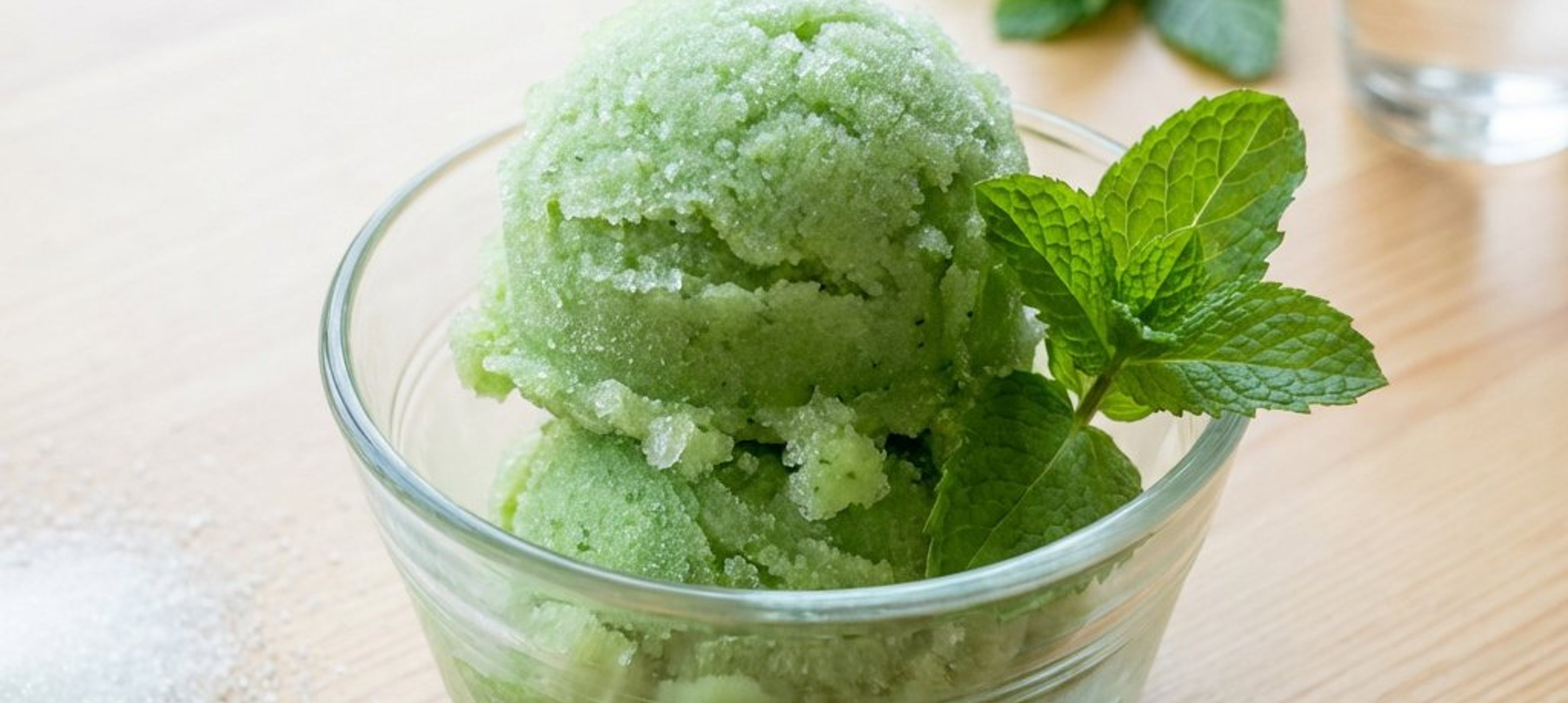 Pentru a obține o textură cremoasă și fină, scoateți sorbetul din congelator la fiecare 30 de minute și amestecați-l energic cu o furculiță pentru a sparge cristalele de gheață. Repetați procesul timp de aproximativ 3 ore.
