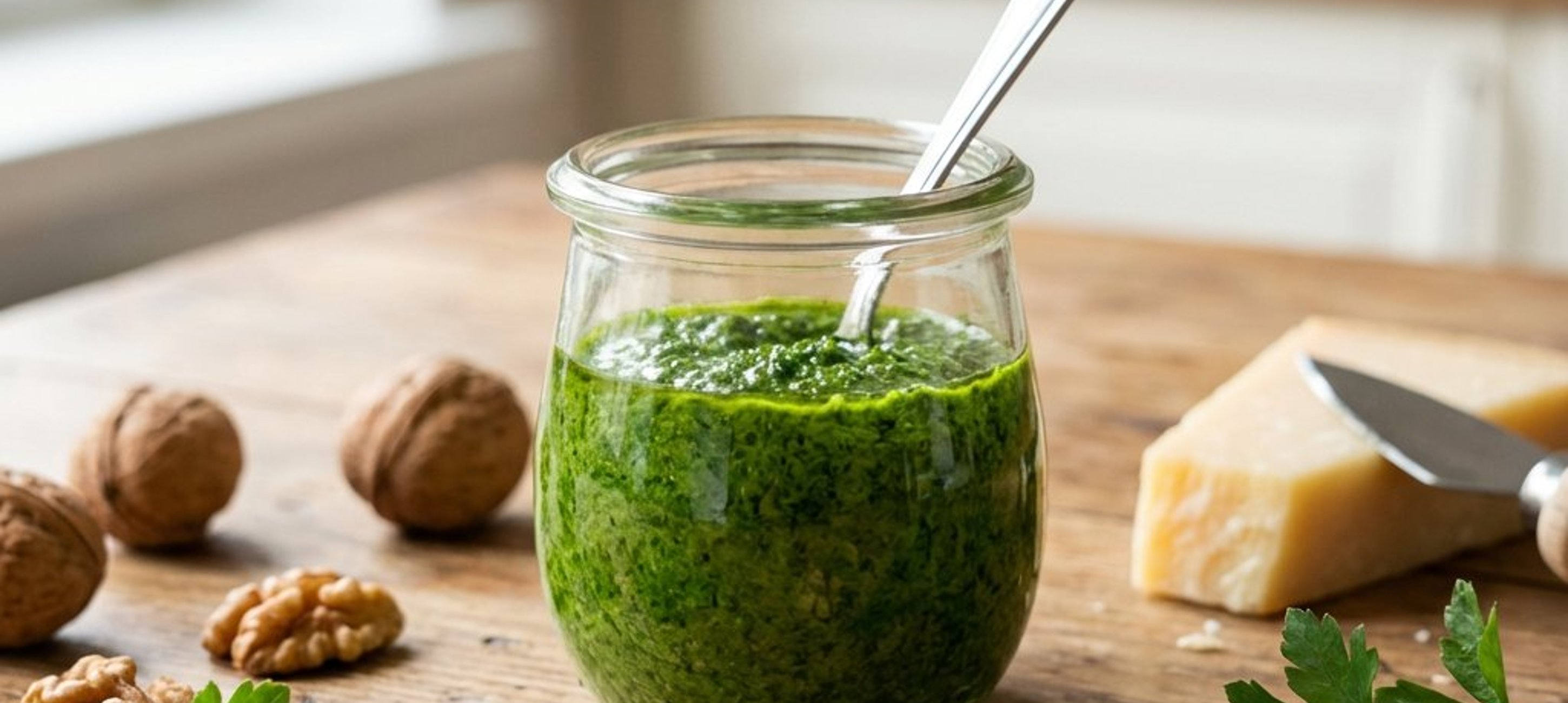 Pătrunjelul este o sursă excelentă de vitamina C și fier, transformând acest pesto într-un aliat pentru sănătate. Încearcă-l și cu paste proaspete!