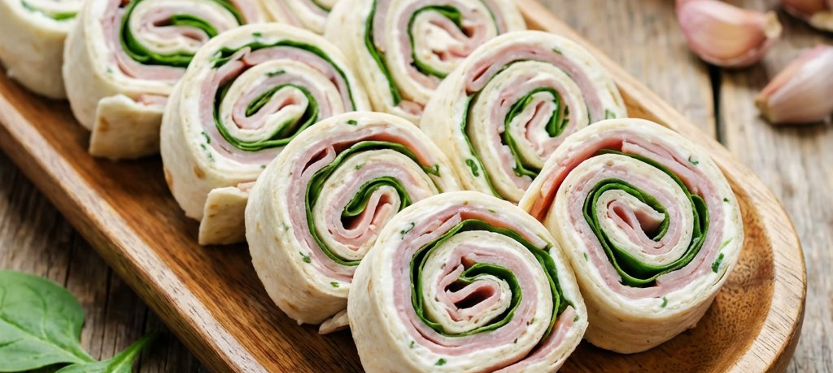 Pentru o prezentare mai colorată, folosiți tortilla cu spanac sau roșii. Rulourile pot fi pregătite cu câteva ore înainte și păstrate la frigider învelite în folie alimentară.
