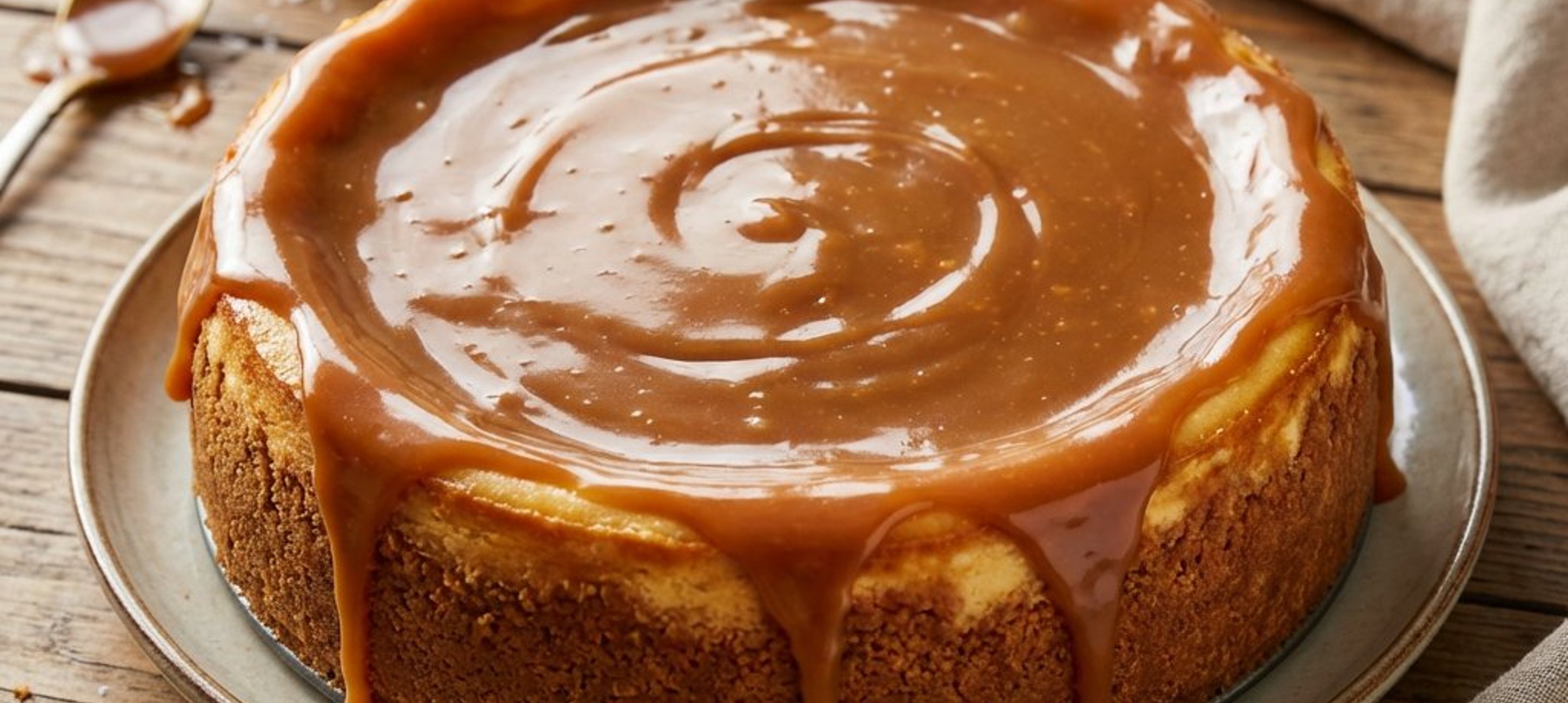 - 3Turnați glazura de caramel peste cheesecake-ul răcit și serviți. Poftă bună!