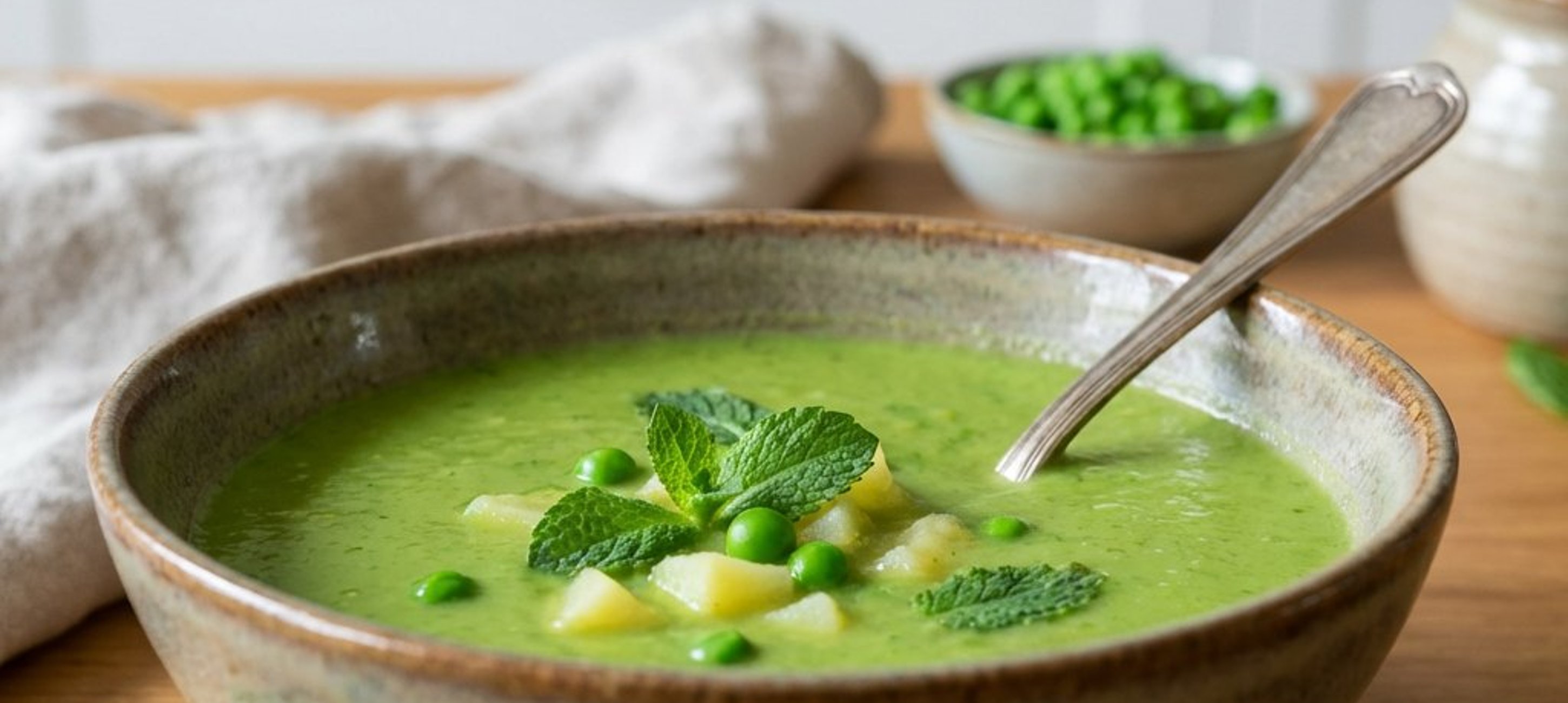 O supă rapidă și plină de prospețime, ideală pentru zilele în care vrei ceva ușor, dar hrănitor. Menta adaugă o notă vibrantă care transformă mazărea obișnuită într-un deliciu culinar.