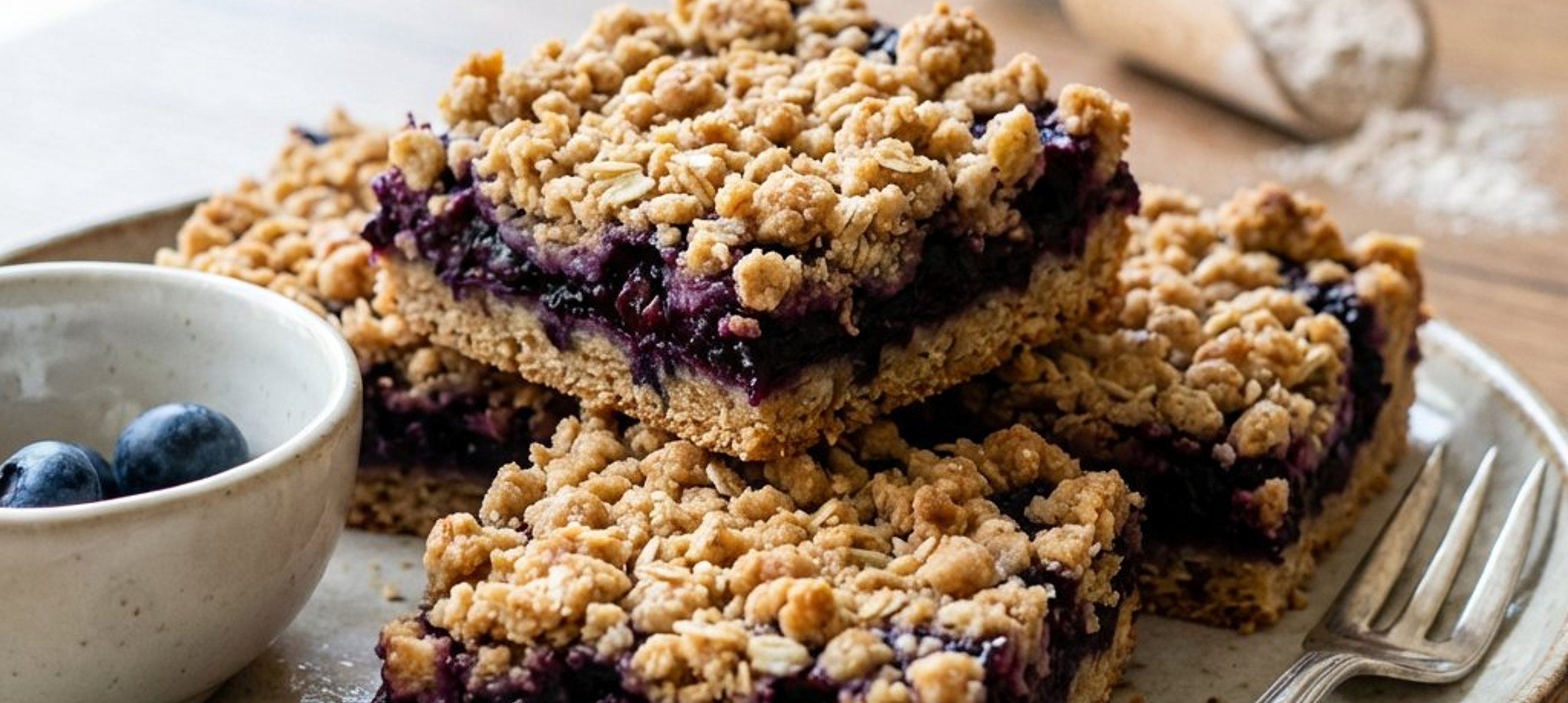 Pentru un rezultat optim, folosiți unt foarte rece pentru stratul de firimituri (crumble), astfel încât acesta să rămână crocant după coacere. Puteți servi cuburile alături de o lingură de iaurt grecesc proaspăt.