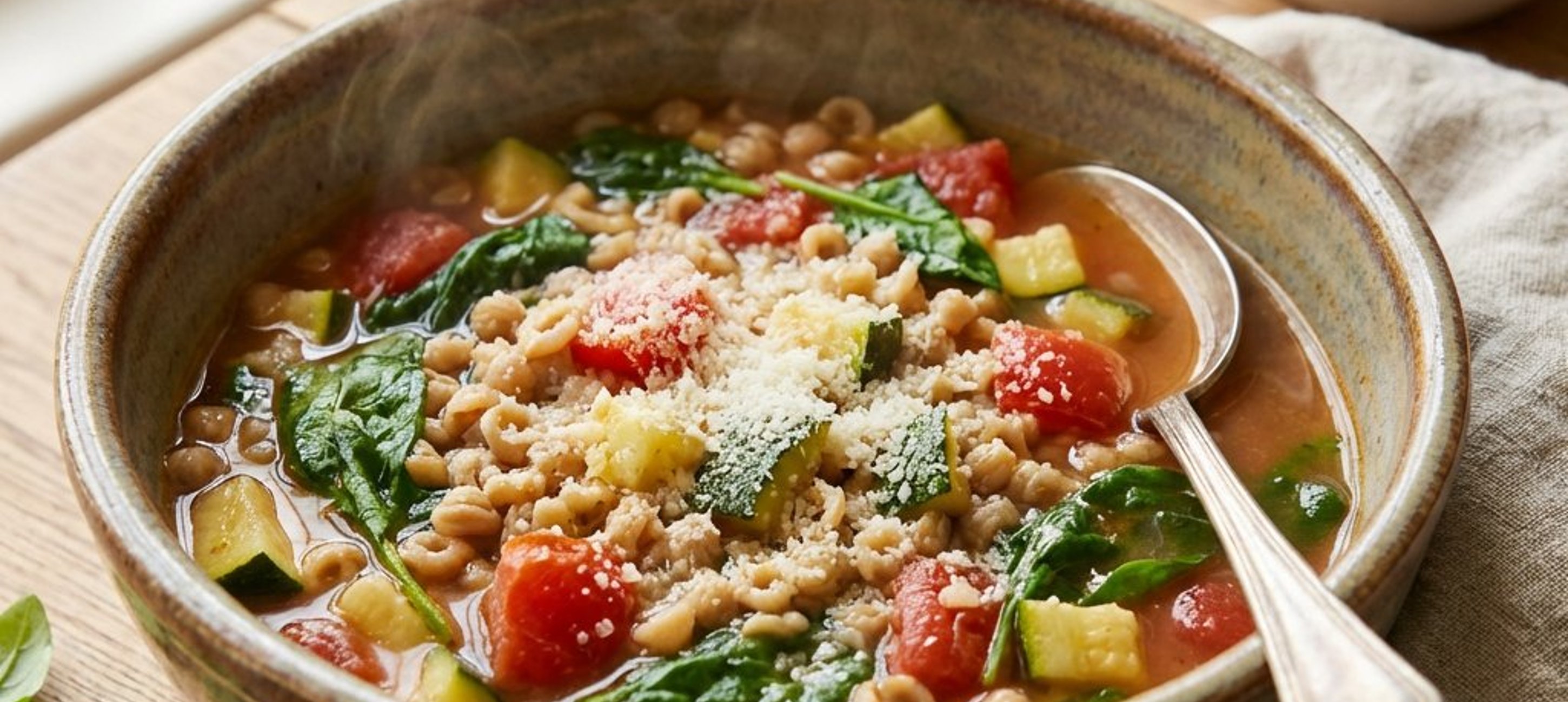 - 3Distribuiți supa fierbinte în 4 boluri și presărați generos parmezan ras peste fiecare porție înainte de servire.