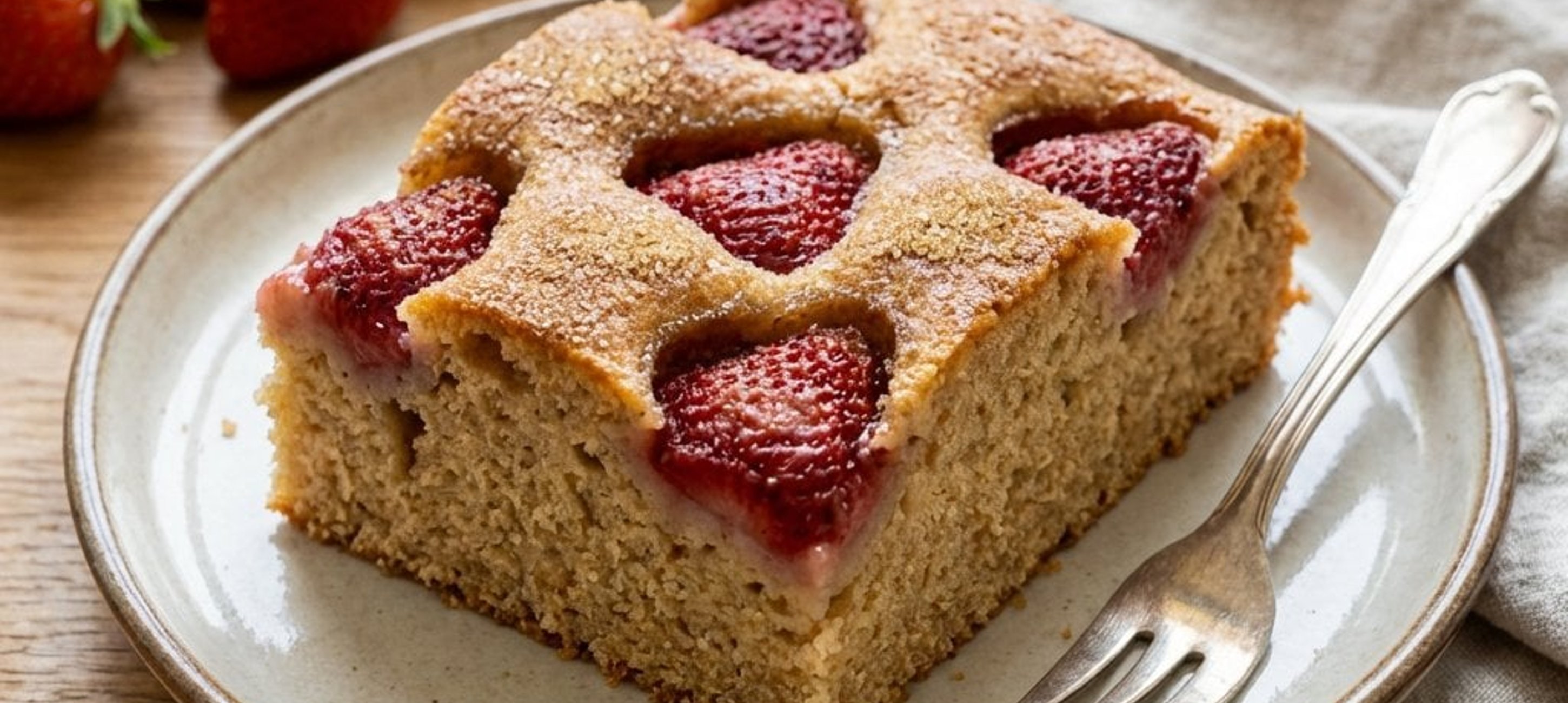 Pentru un plus de aromă, puteți adăuga puțină coajă de lămâie rasă în aluat. Dacă folosiți căpșuni congelate, nu le decongelați înainte de a le pune pe prăjitură, pentru a evita lăsarea excesivă de suc.