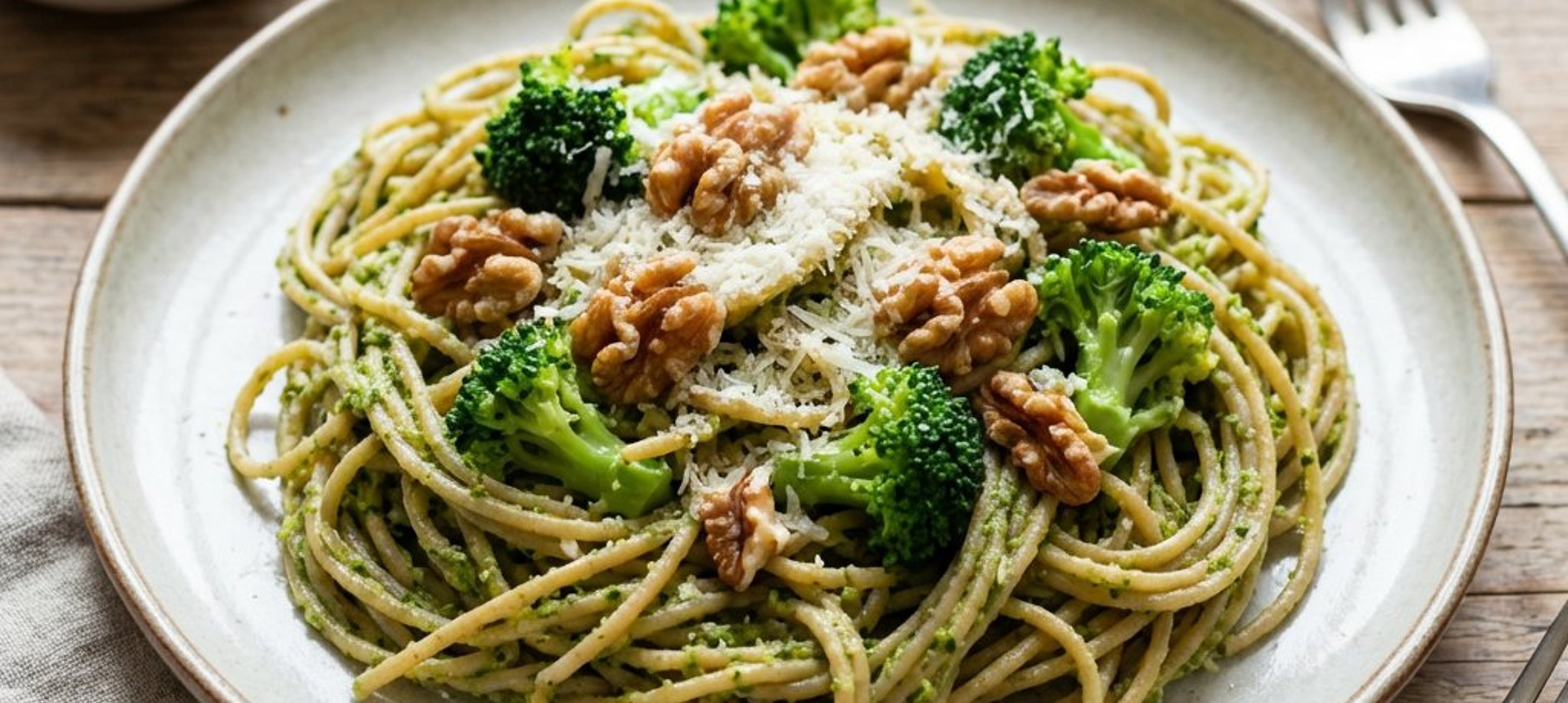 Pentru o aromă mai intensă, puteți prăji ușor nucile într-o tigaie uscată înainte de a le adăuga în pesto. Serviți cu extra parmezan ras deasupra.