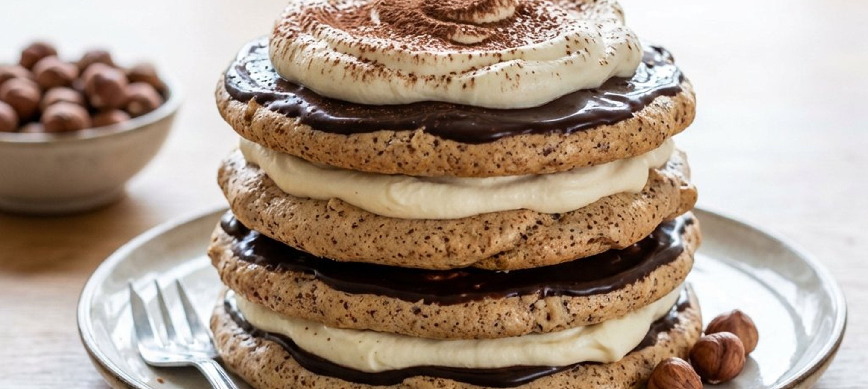 Pentru un rezultat perfect, asigurați-vă că albușurile sunt la temperatura camerei înainte de a le bate, iar smântâna pentru frișcă este foarte rece. Puteți decora tortul cu alune de pădure întregi sau ciocolată rasă.