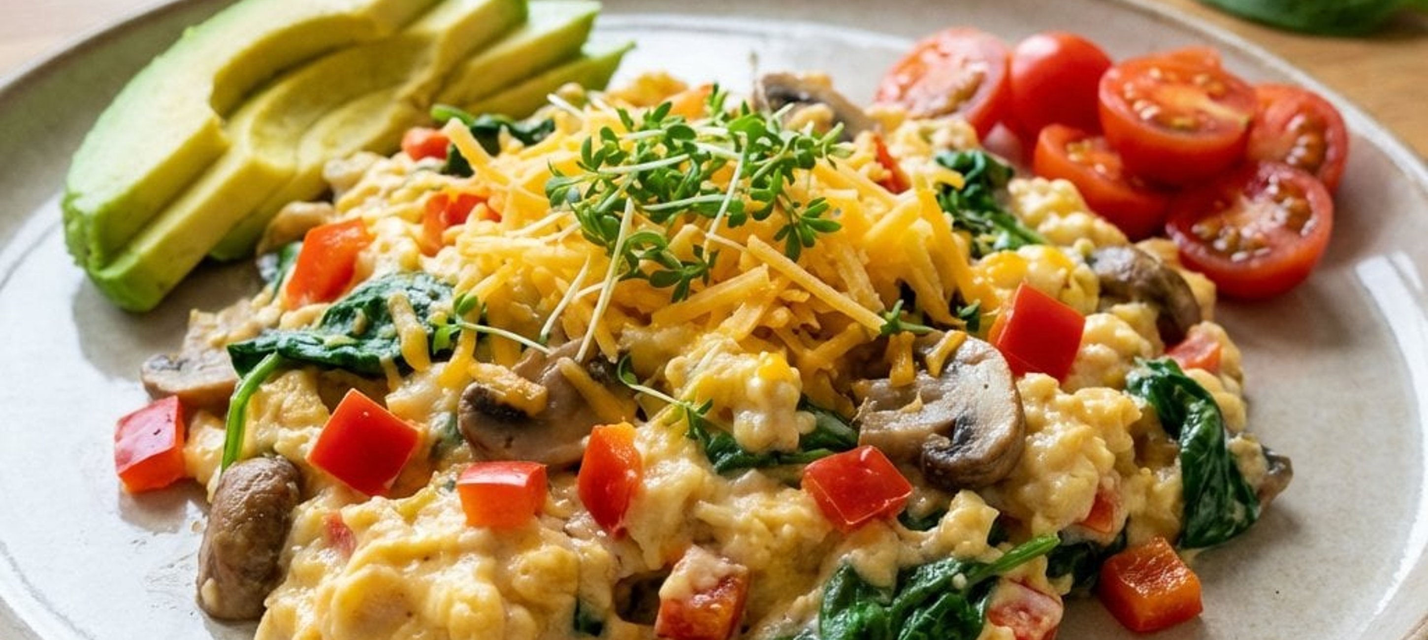 Pentru un plus de prospețime, presărați puțin creșon sau pătrunjel verde deasupra înainte de servire. Avocado adaugă o textură cremoasă care completează perfect ouăle.