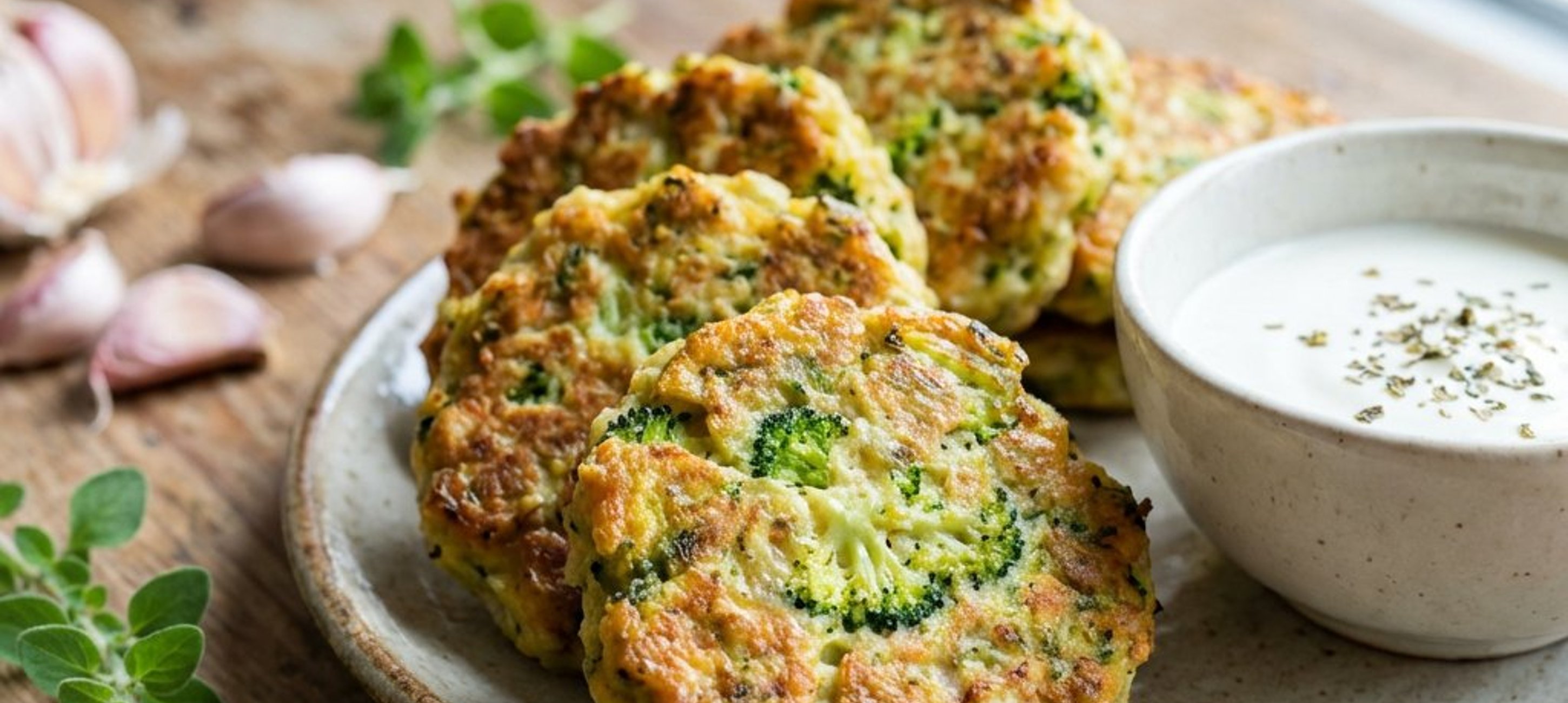 Serviți chiftelele de broccoli cu un sos rapid preparat din smântână fermentată amestecată cu cel de-al treilea cățel de usturoi zdrobit.